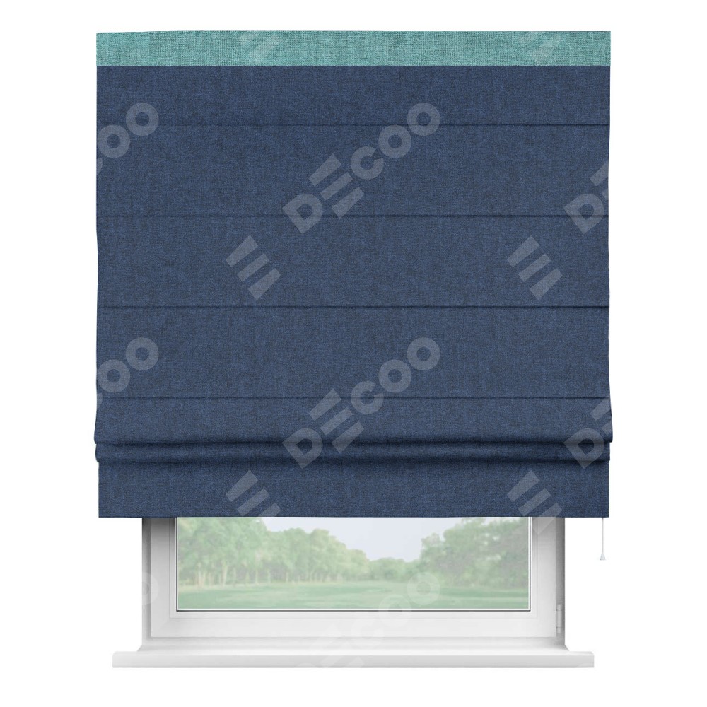 Римская штора «Кортин» для проёма, лён кашемир тёмно-синий, с кантом Кинг