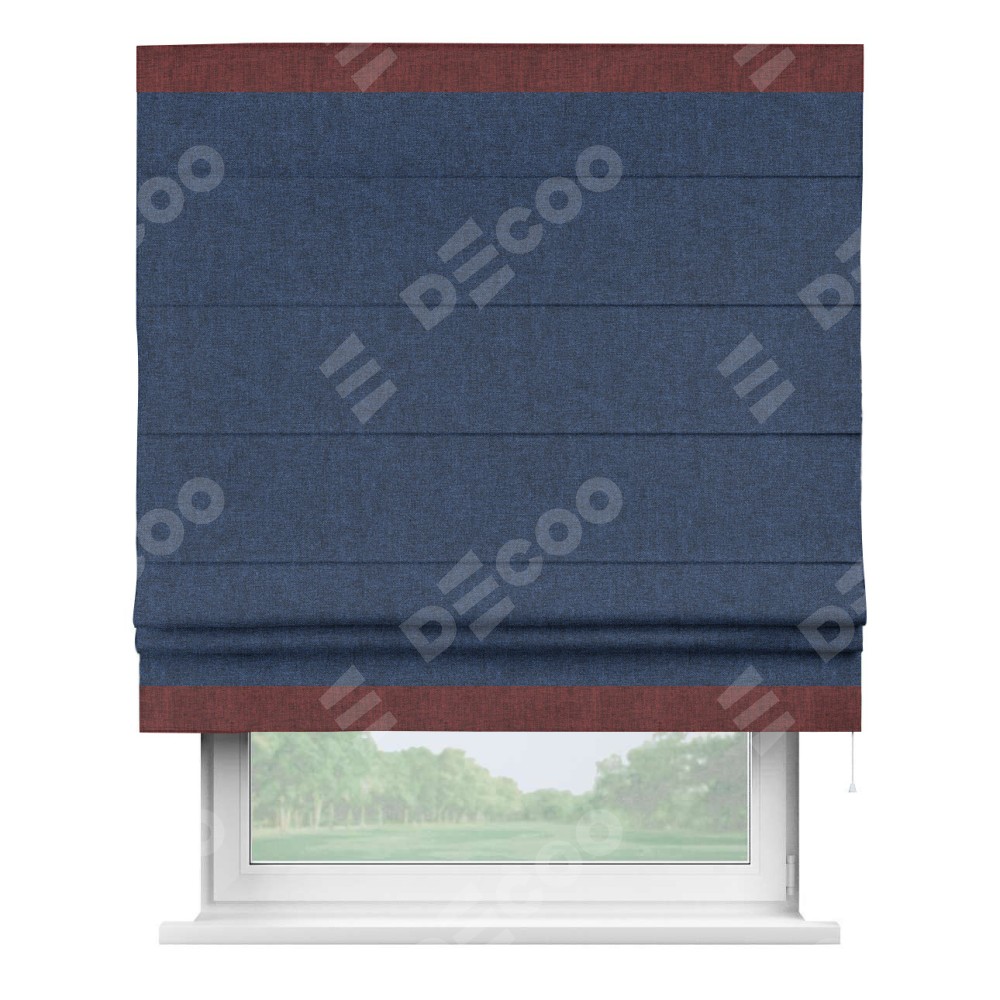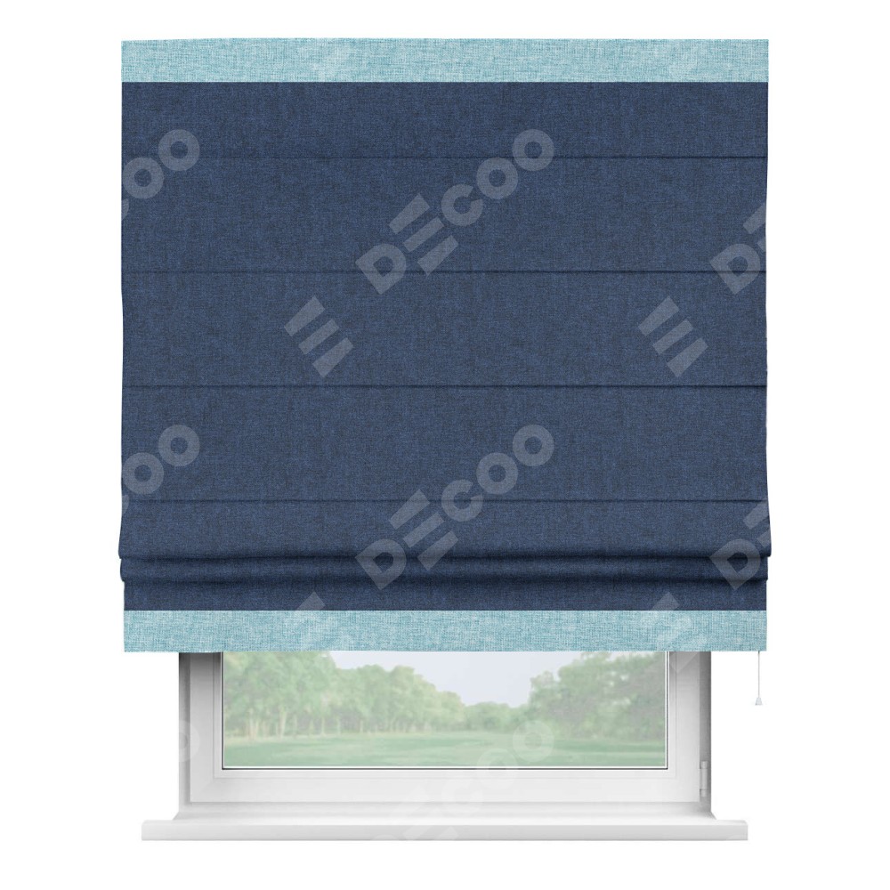 Римская штора «Кортин» для проёма, лён кашемир тёмно-синий, с кантом Горизонт