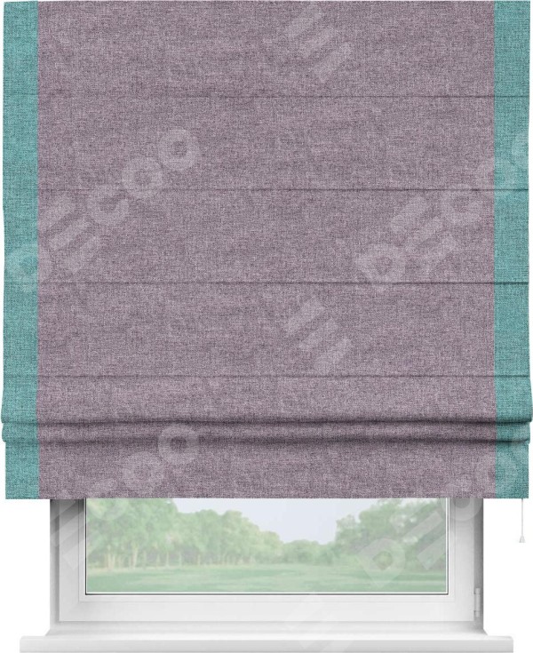 Римская штора «Кортин» для проёма, лён кашемир фиолетовый, с кантом Стрим Дуо