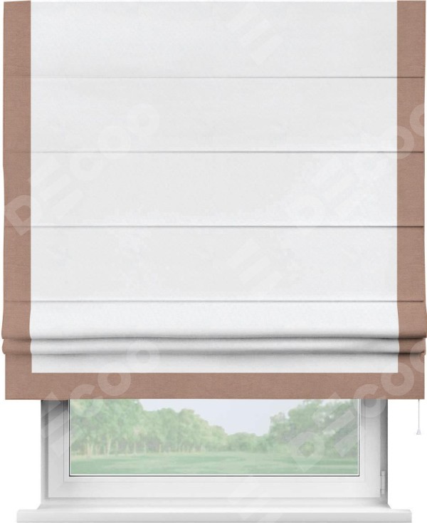Римская штора с отделкой кантом «Виктория», пошита из ткани вельвет белоснежный, артикул: 92698. представляет собой элегантное решение для оконного оформления. Кант по бокам и снизу шторы добавляет изысканности и аккуратности внешнему виду, подчеркивая линии и форму шторы. Этот элемент декора не только украшает, но и выполняет практическую функцию, защищая края ткани от износа. Кант может быть выполнен в контрастном или гармонирующем цвете, что позволяет добиться различных стилевых эффектов и легко вписать штору в интерьер комнаты.