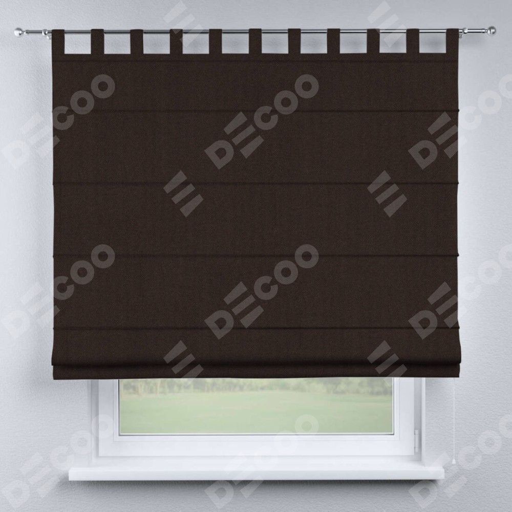 Римская штора производителя «Cortin», используется для проёма, пошита из ткани лён димаут венге, артикул ткани 91001. Данная модель пошита на петлях, комплектуется на выбор круглым карнизом и подходит для монтажа на стену. Римская штора на петлях имеет простую систему регулировки высоты, отличительным преимуществом данной модели является простой способ монтажа. Достаточно повесить ее на трубу и штора готова!