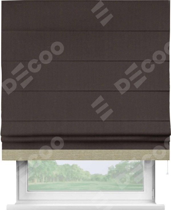 Римская штора «Кортин» для проема, лён димаут венге с кантом Джестер