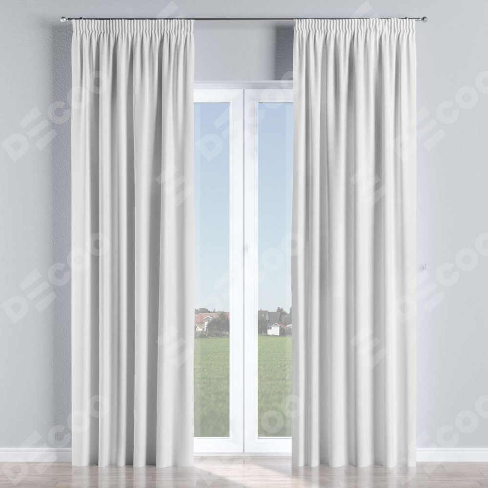 Комплект прямых штор, от производителя «Cortin», пошиты из ткани вайтаут однотонная белая, артикул ткани 93935. С изнаночной стороны в верхней части штор пристрачивается шторная лента с декоративными складками «Карандаш». Для создания элегантных складок рекомендуемый коэффициент 1:2 (на 100 см. ширины проёма 200 см. ширины ткани). Важно! Ширина штор указана без учёта коэффициента сборки!