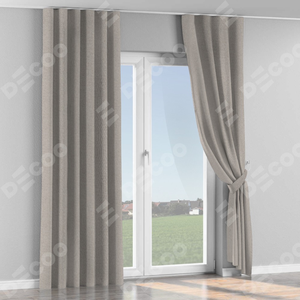 Комплект прямых штор, от производителя «Cortin», пошиты из ткани лён димаут серо-бежевый, артикул ткани 17. С изнаночной стороны в верхней части штор пристрачивается шторная лента с декоративными складками «Волна». Для создания элегантных складок рекомендуемый коэффициент 1:2 (на 100 см. ширины проёма 200 см. ширины ткани). Важно! Ширина штор указана без учёта коэффициента сборки!