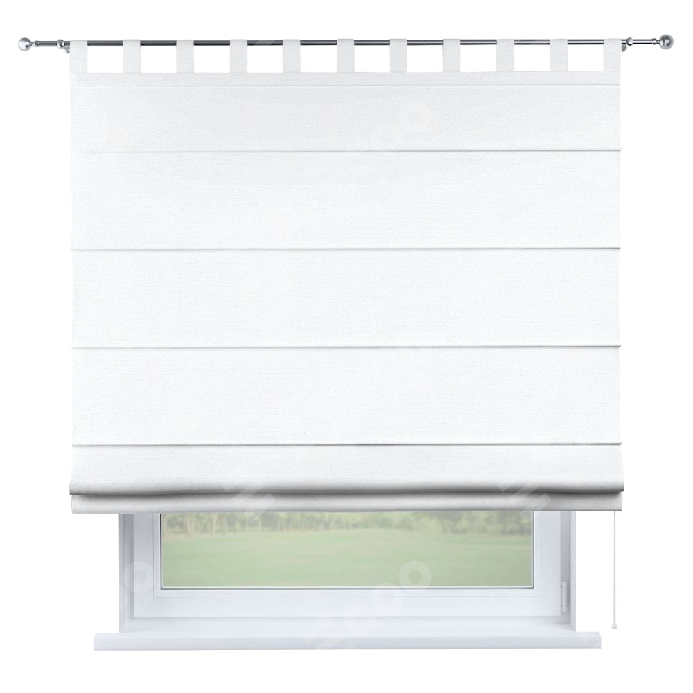Римская штора производителя «Cortin», используется для проёма, пошита из ткани лён димаут белый, артикул ткани 28. Данная модель пошита на петлях, комплектуется на выбор круглым карнизом и подходит для монтажа на стену. Римская штора на петлях имеет простую систему регулировки высоты, отличительным преимуществом данной модели является простой способ монтажа. Достаточно повесить ее на трубу и штора готова!