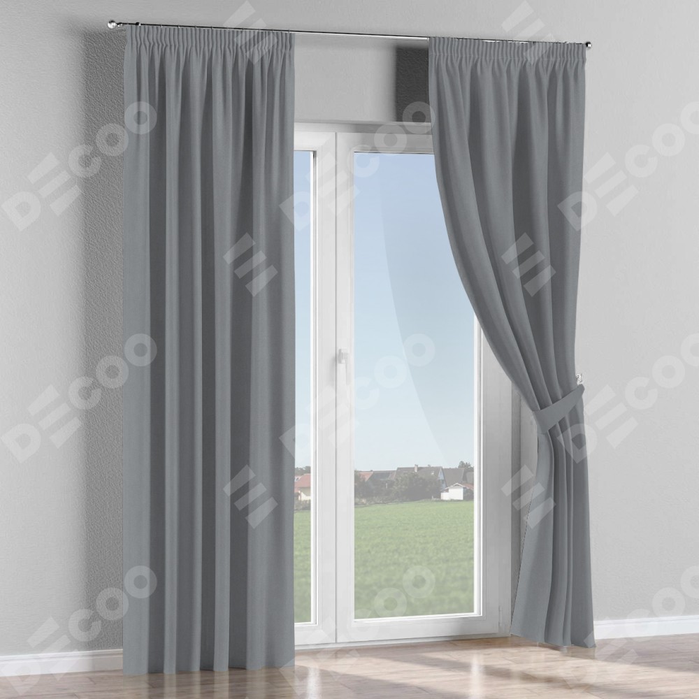 Комплект прямых штор, от производителя «Cortin», пошиты из ткани однотонный блэкаут серый, артикул ткани 146436. С изнаночной стороны в верхней части штор пристрачивается шторная лента с декоративными складками «Карандаш». Для создания элегантных складок рекомендуемый коэффициент 1:2 (на 100 см. ширины проёма 200 см. ширины ткани). Важно! Ширина штор указана без учёта коэффициента сборки!