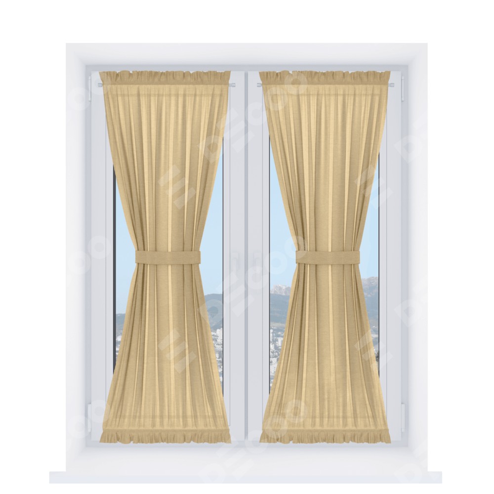 Штора «Песочные часы» производителя «Cortin», используется для створок окон и дверей, пошита из ткани лён тёмно-бежевый, артикул ткани 53433.