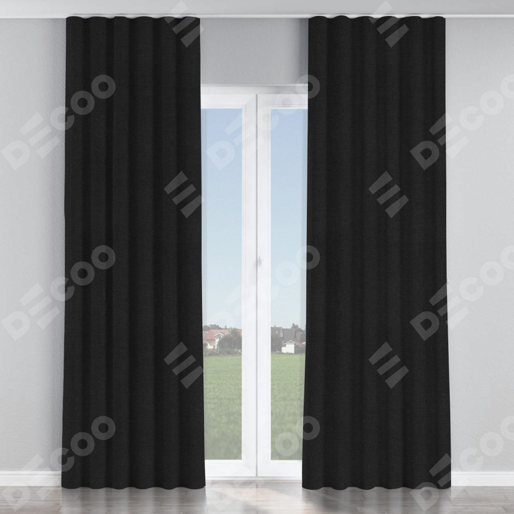 Комплект прямых штор, от производителя «Cortin», пошиты из ткани лён черный, артикул ткани 140815. С изнаночной стороны в верхней части штор пристрачивается шторная лента с декоративными складками «Волна». Для создания элегантных складок рекомендуемый коэффициент 1:2 (на 100 см. ширины проёма 200 см. ширины ткани). Важно! Ширина штор указана без учёта коэффициента сборки!