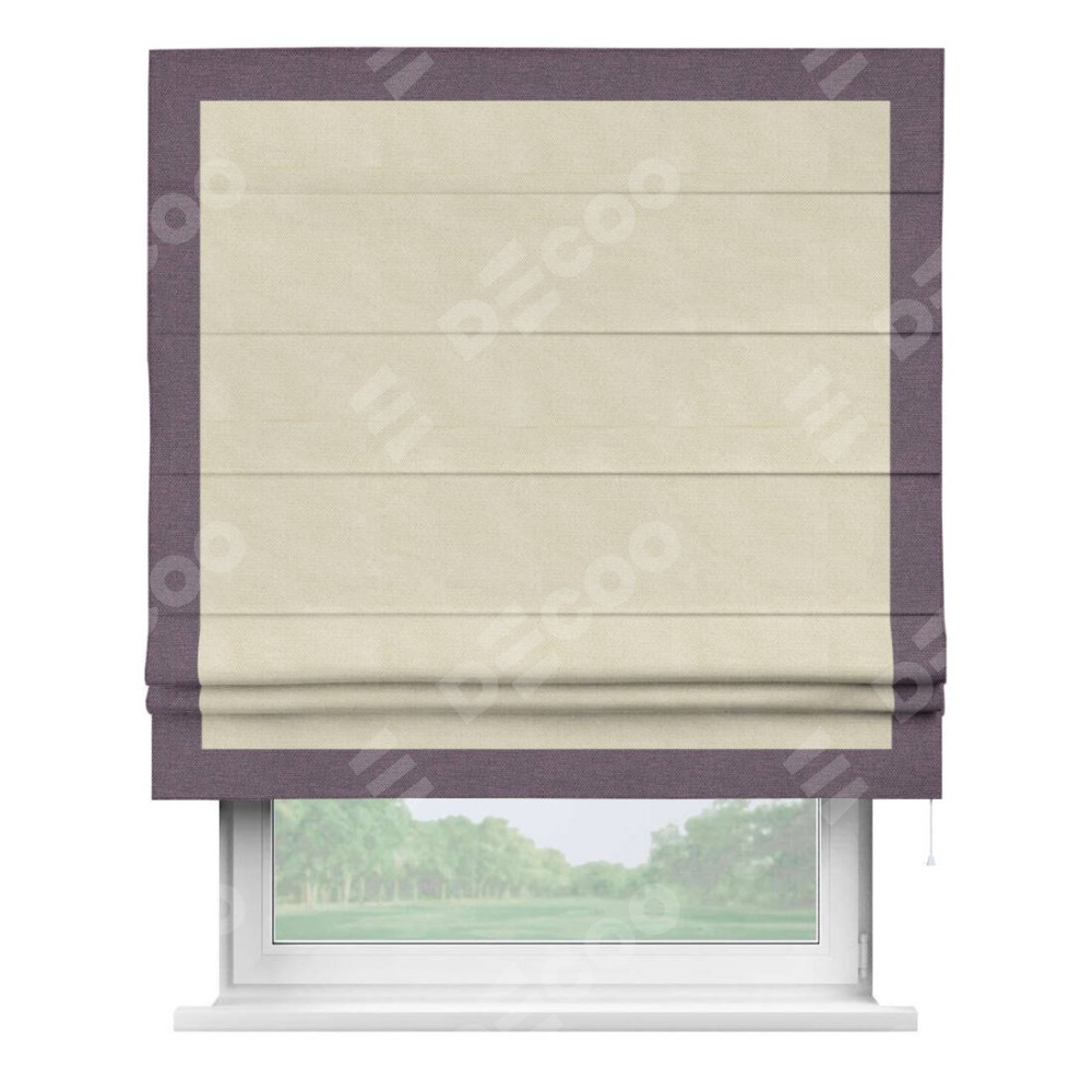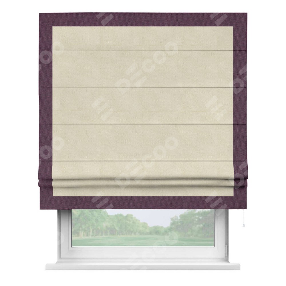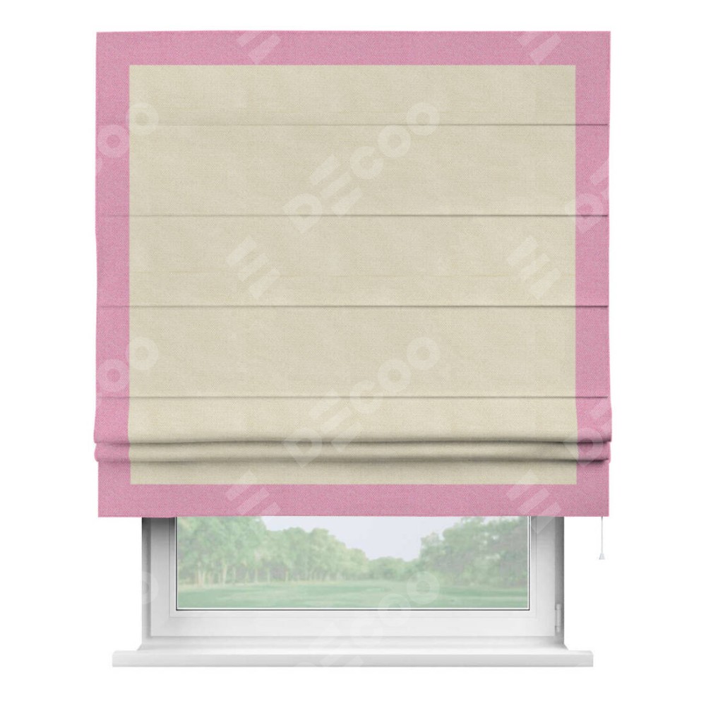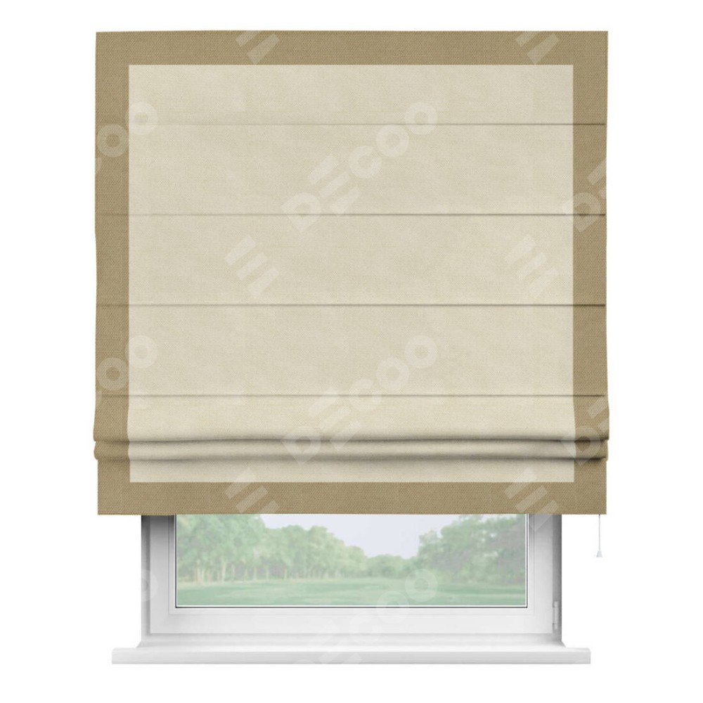 Римская штора «Кортин» с кантом Чесс, для проема, ткань лён димаут, бежевый