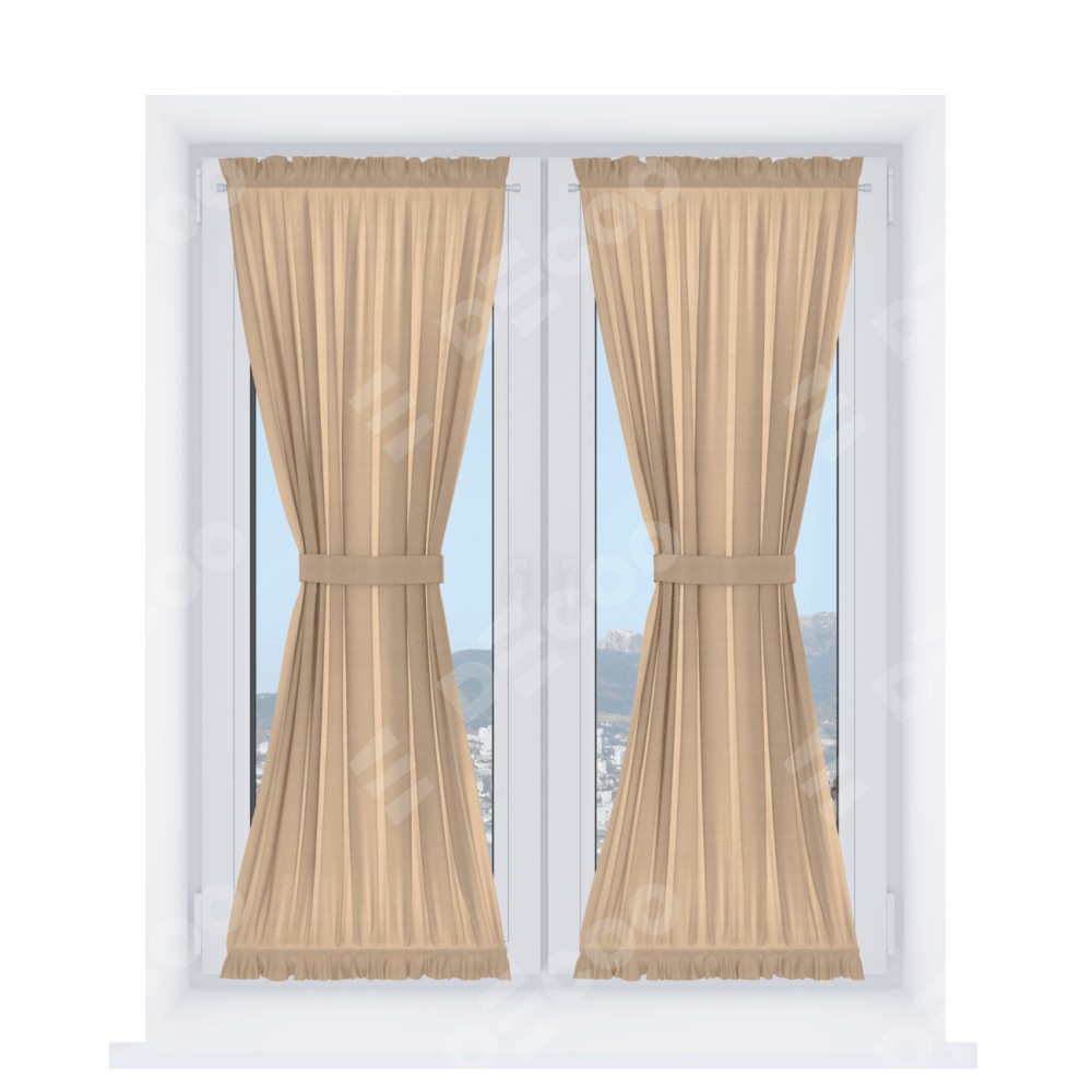 Штора «Песочные часы» производителя «Cortin», используется для створок окон и дверей, пошита из ткани вельвет песочный, артикул ткани 17740.