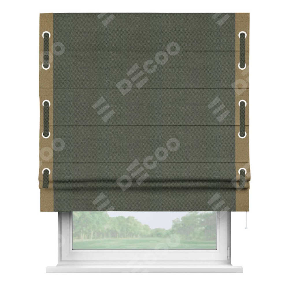 Римская штора «Кортин» с кантом Стрим Дуо (люверсы с пояском), для проема, ткань лён димаут, графит