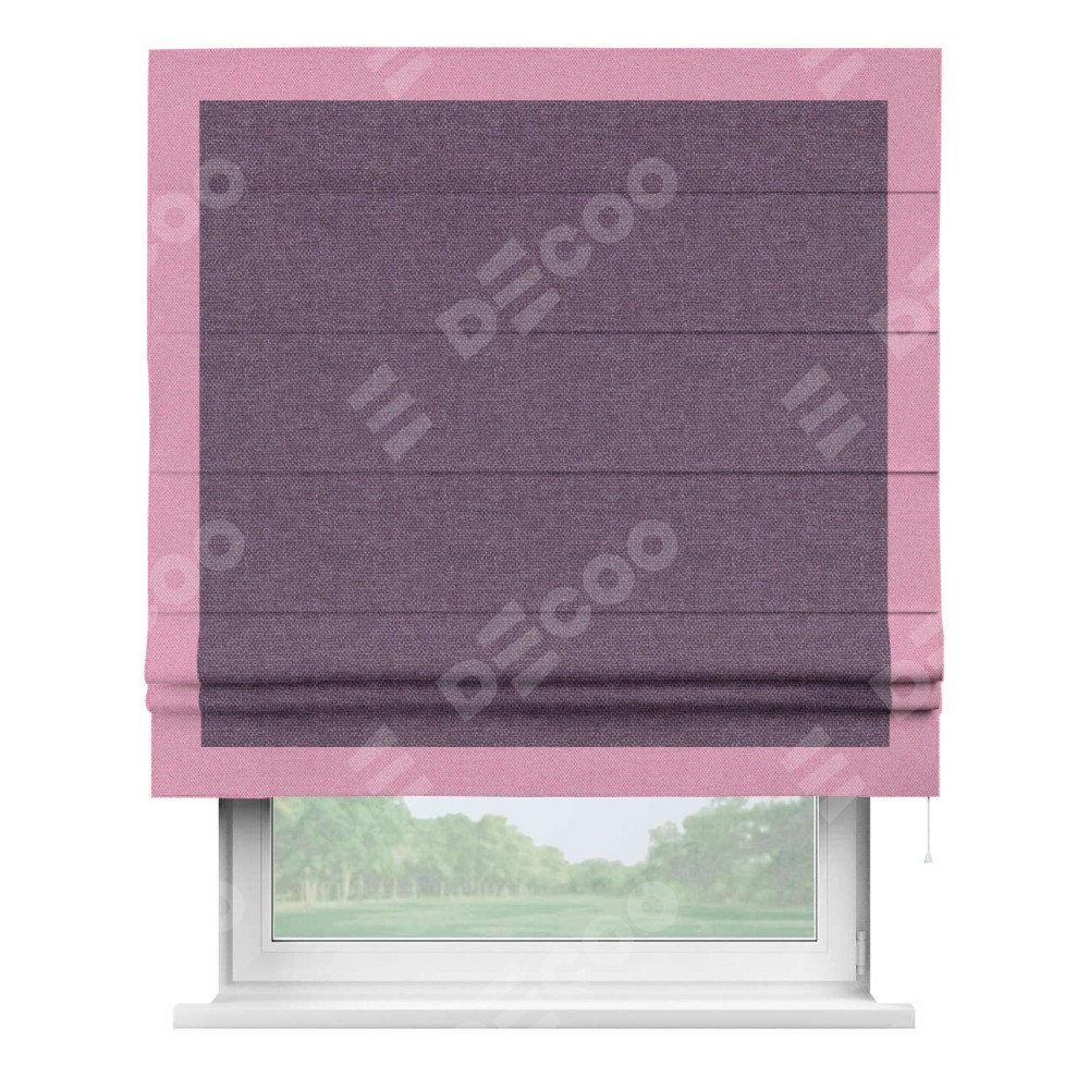 Римская штора производителя «Cortin», используется для проёма, пошита из ткани лён димаут брусника, артикул 16. Отделка шторы кантом «Чесс», ткань для канта используется из льна димаут разной расцветки на выбор. Имеет универсальный механизм и подходит для монтажа: на потолок, на стену и в нишу.