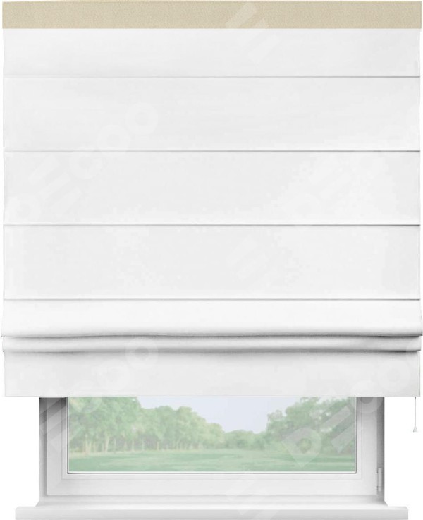 Римская штора «Кортин» для проёма, вайтаут однотонная белая с кантом Кинг