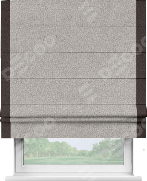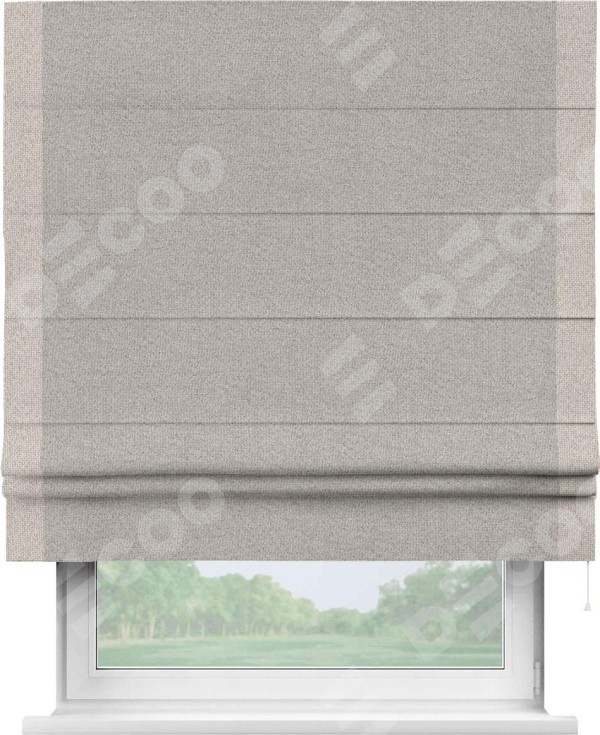 Римская штора «Кортин» для проема, лён димаут серо-бежевый с кантом Стрим Дуо