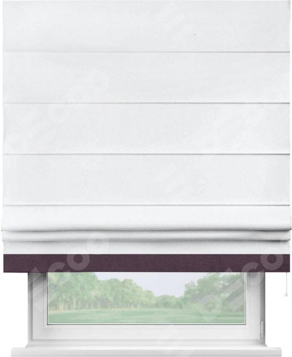 Римская штора «Кортин» для проема, лён димаут белый с кантом Джестер