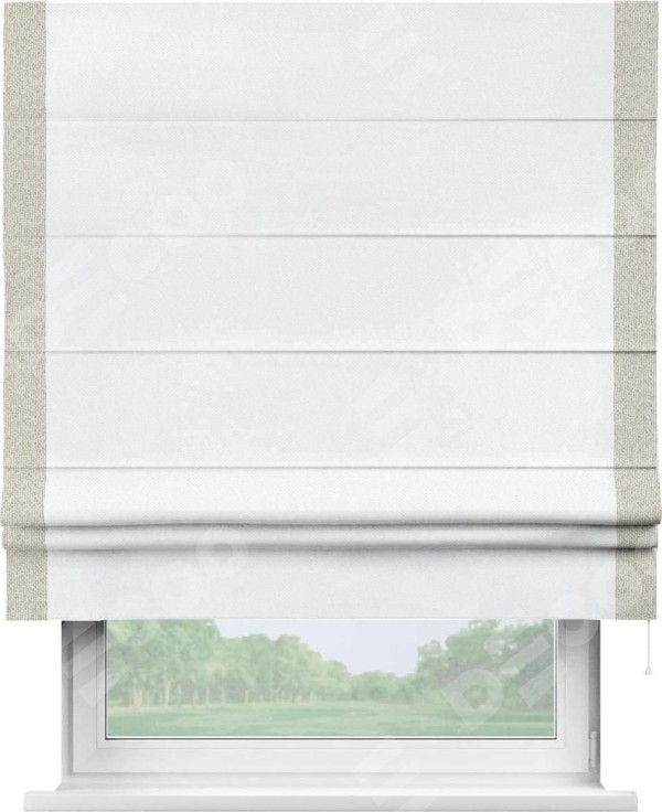 Римская штора «Кортин» для проема, лён димаут белый с кантом Стрим Дуо