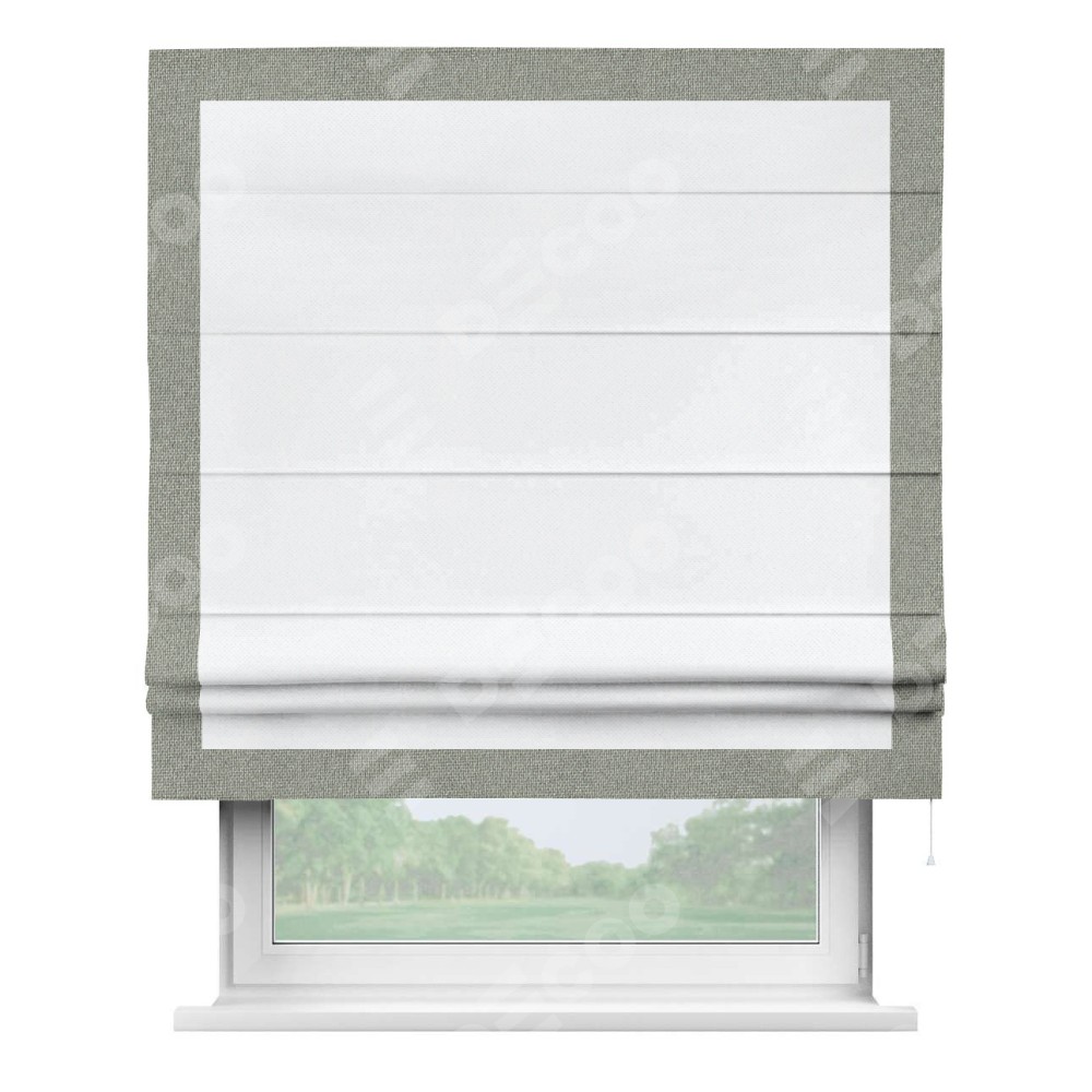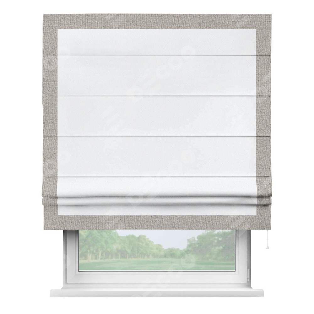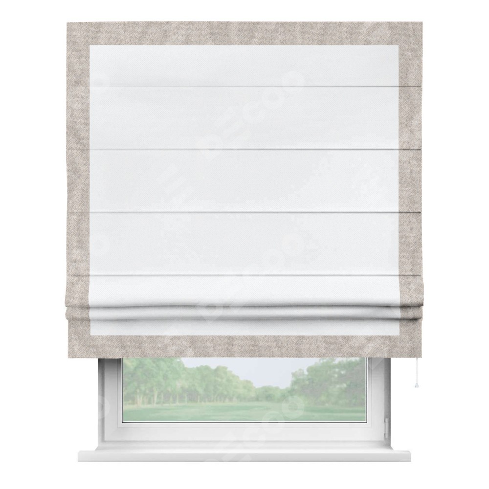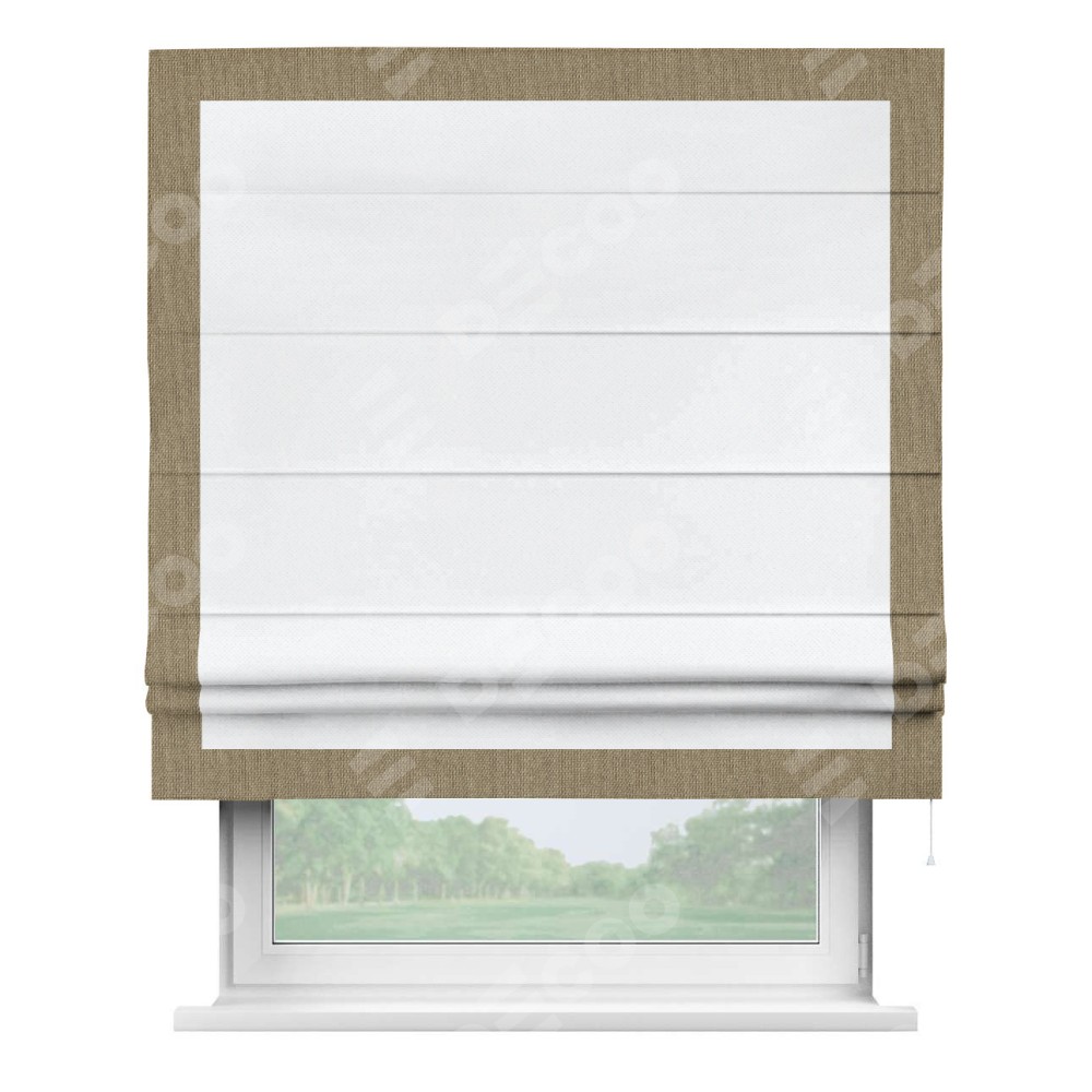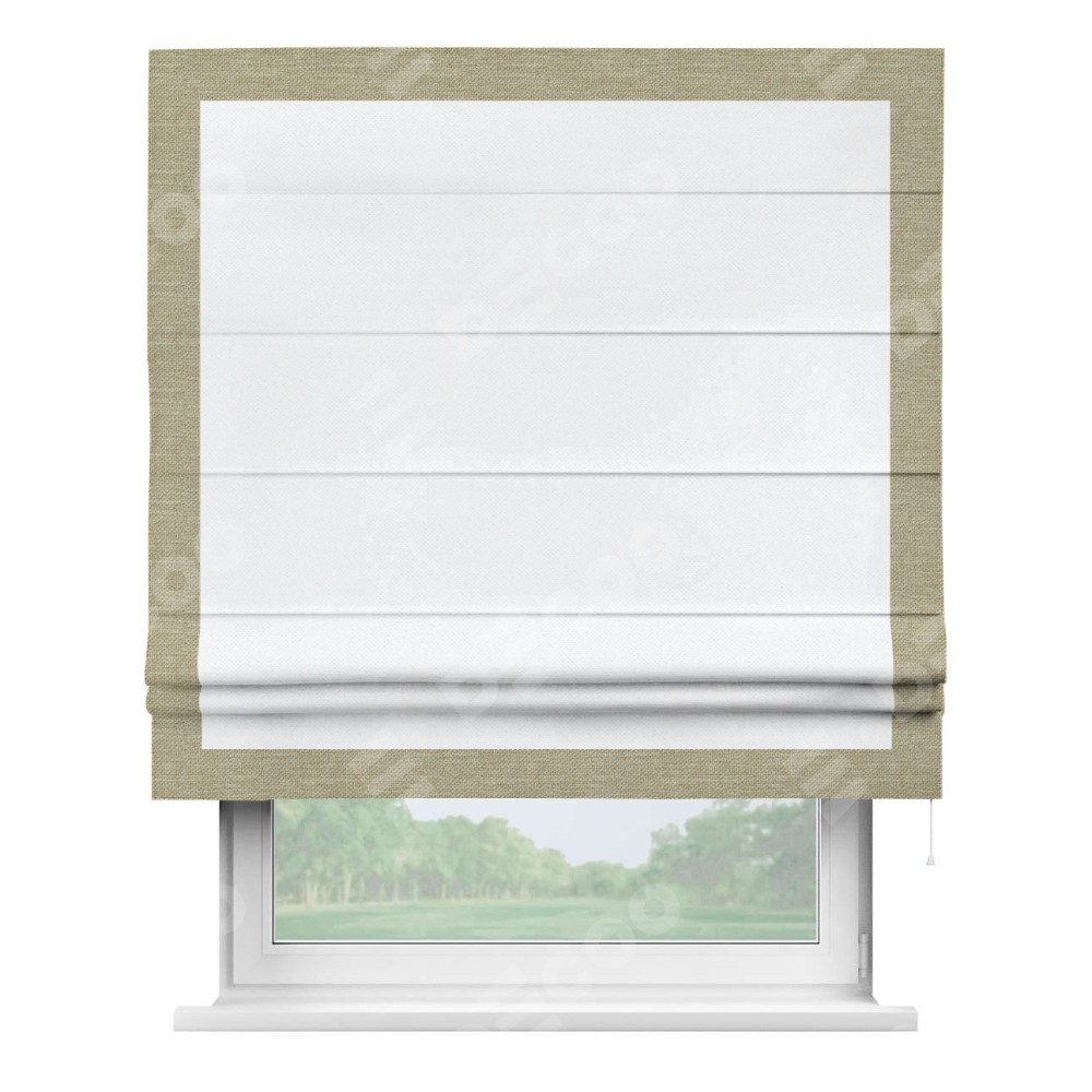 Римская штора «Кортин» для проема, лён димаут белый с кантом Чесс