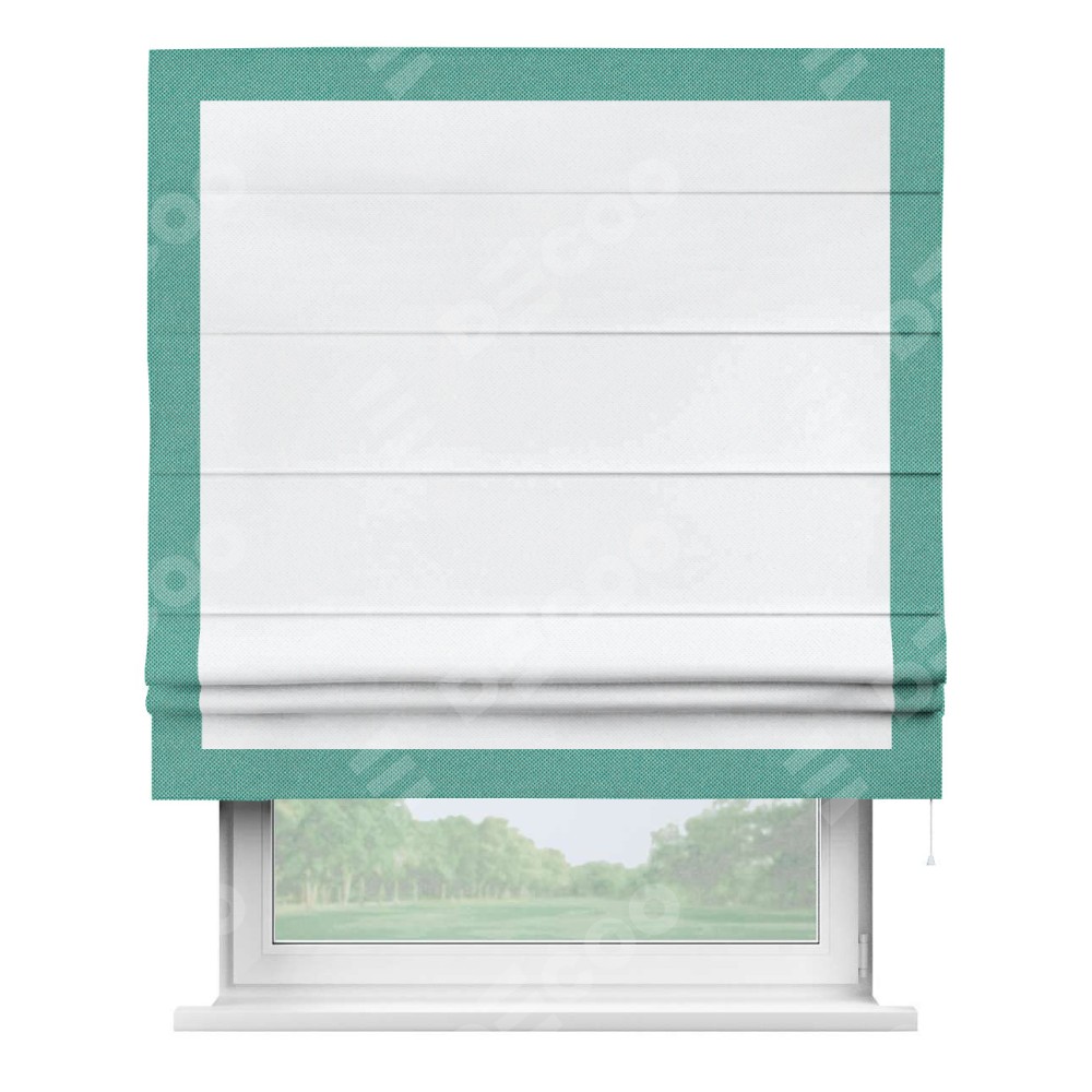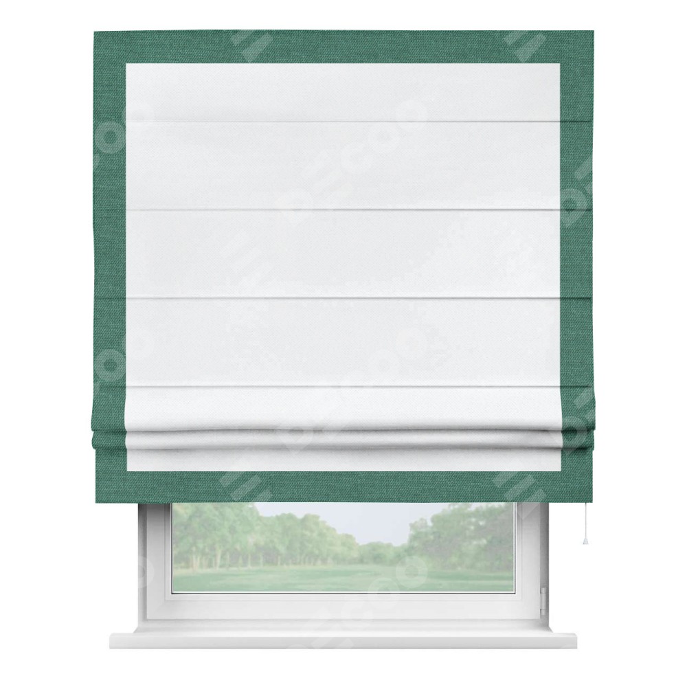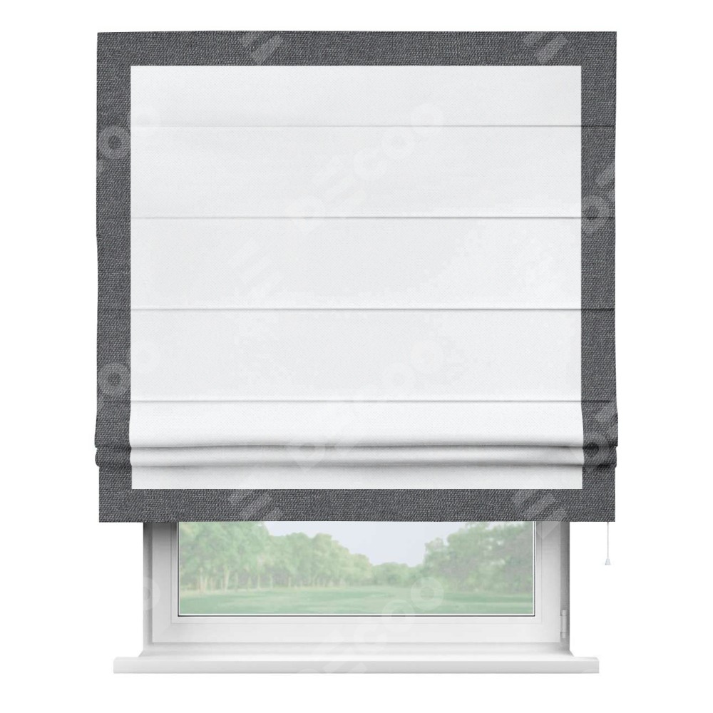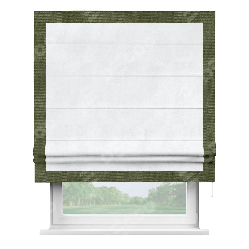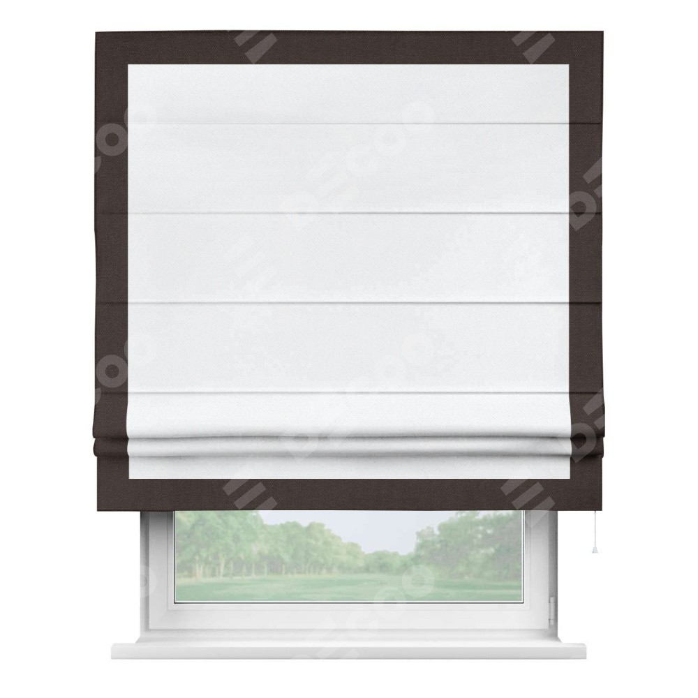 Римская штора «Кортин» для проема, лён димаут белый с кантом Чесс