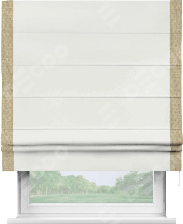 Римская штора «Кортин» для проема, лён димаут молочный с кантом Стрим Дуо