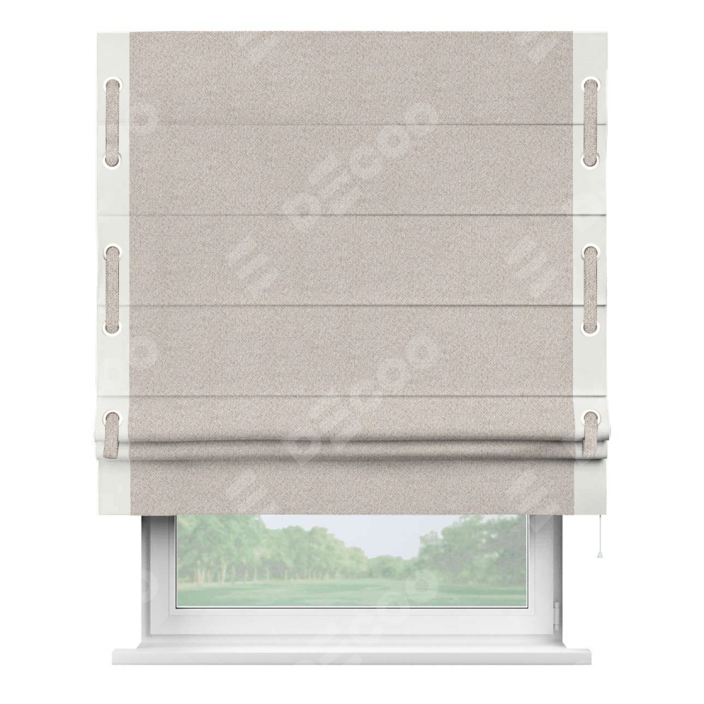 Римская штора «Кортин» для проема, лён димаут бежевый с кантом Стрим Дуо (люверсы с пояском)