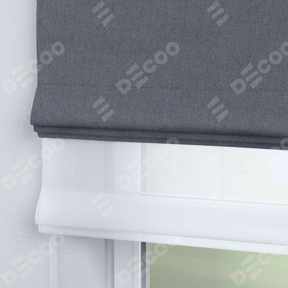 Двойная римская штора «День-ночь» от производителя Cortin предназначена для использования в проёмах. Эта штора уникальна тем, что состоит из двух полотен. На лицевой стороне находится лён блэкаут тёмно-серый (артикул: 139663), обеспечивающий эффективное затемнение. В комплект также входит вторая ткань — легкий белый тюль (артикул: V-01), который добавляет изящества и легкости оформлению окна. Кроме того, доступны и другие разновидности ткани тюль, выбор которых доступен по  ссылке .
