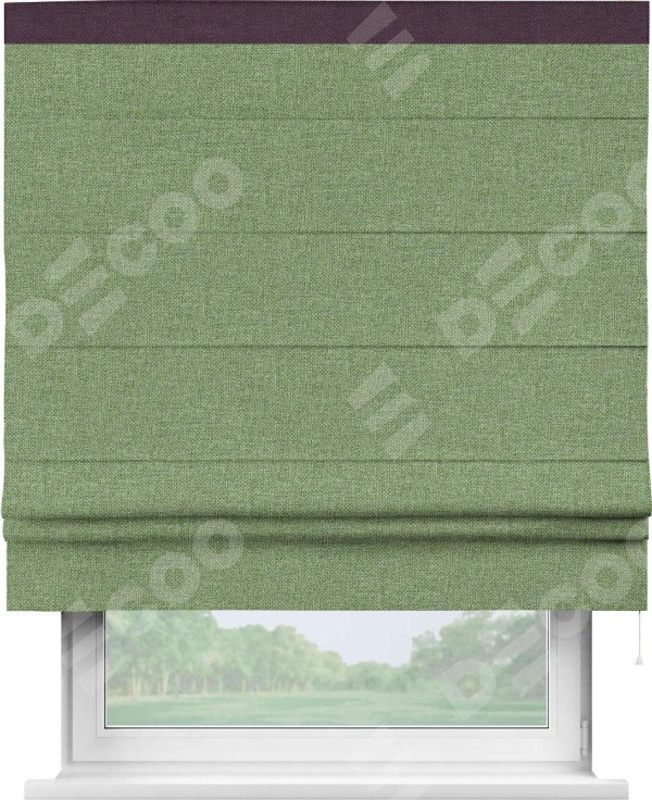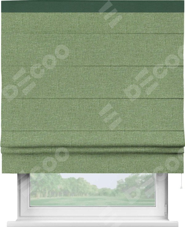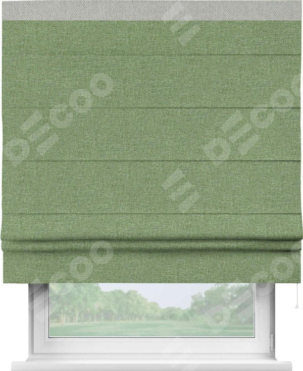 Римская штора «Cortin» для проёма, лён димаут светло-салатовый с кантом Кинг