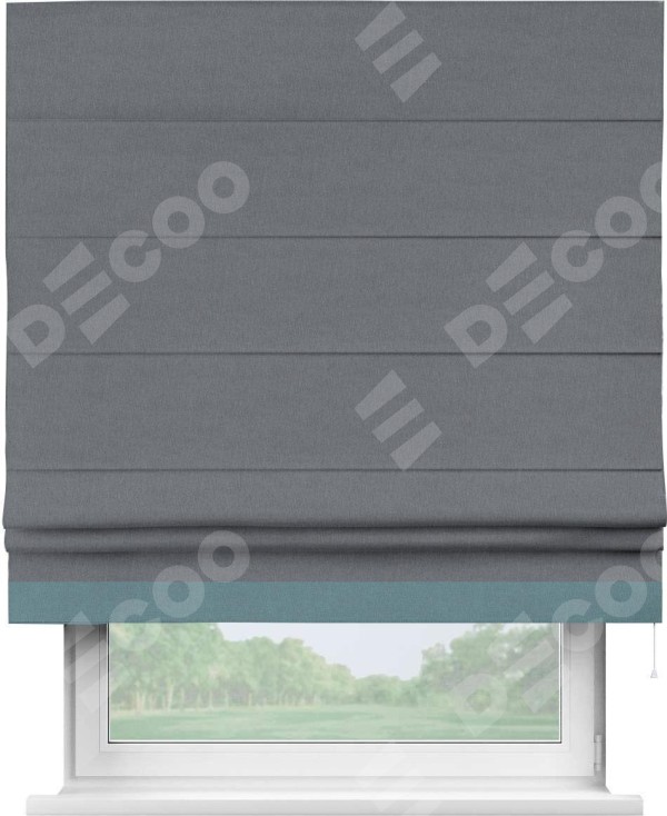 Римская штора «Кортин» с кантом Джестер, для проема, лён блэкаут тёмно-серый