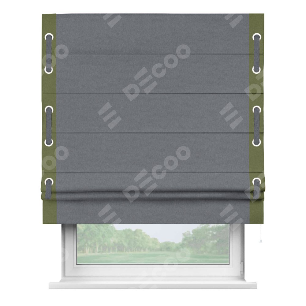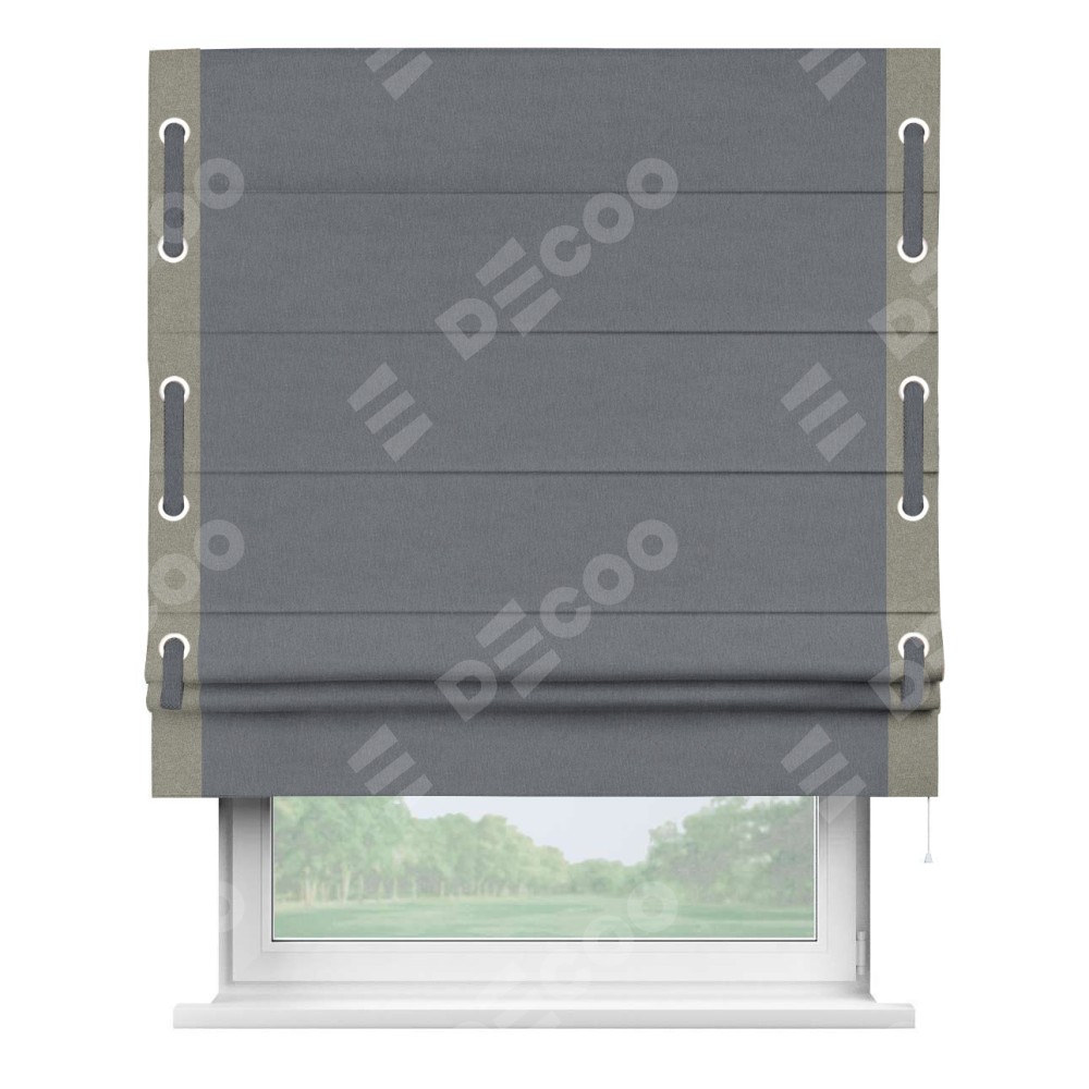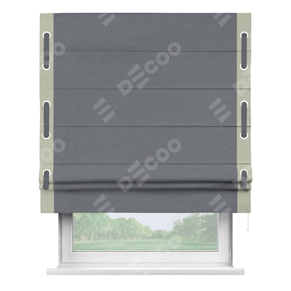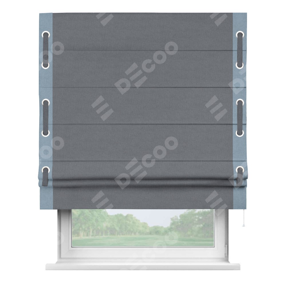 Римская штора «Кортин» с кантом Стрим Дуо (люверсы с пояском), для проема, лён блэкаут тёмно-серый