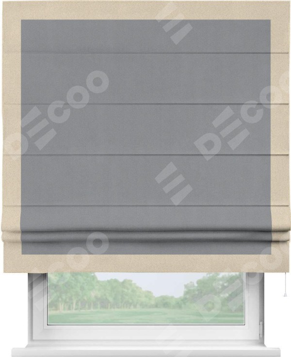Римская штора «Кортин» для проема, блэкаут однотонный серый с кантом Чесс