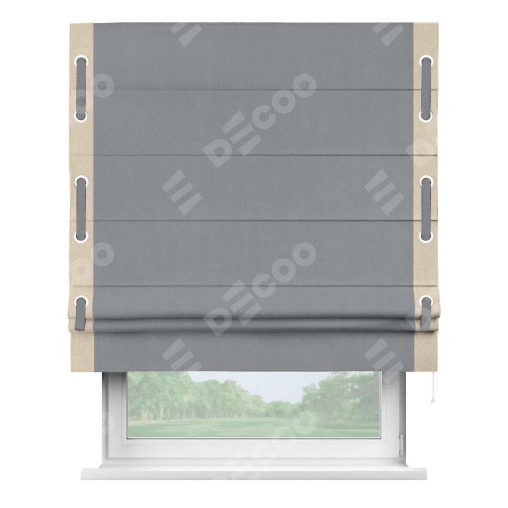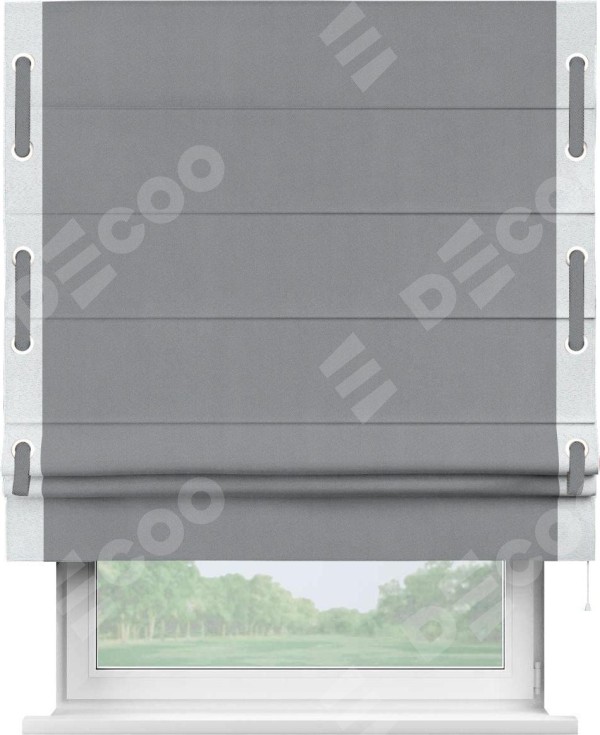 Римская штора «Кортин» для проема, блэкаут однотонный серый с кантом Стрим Дуо (люверсы с пояском)