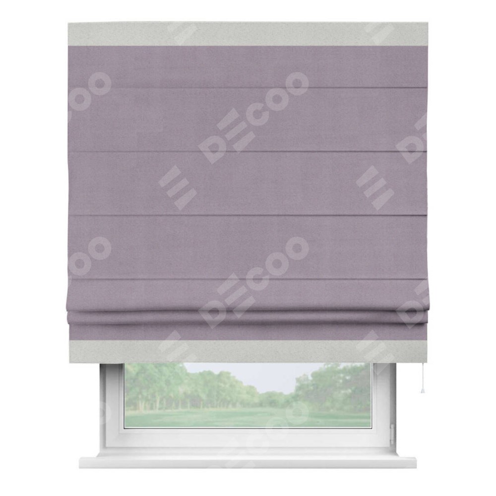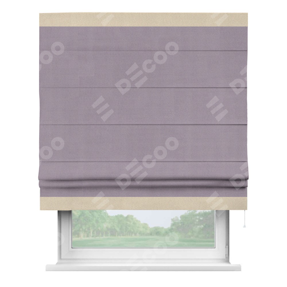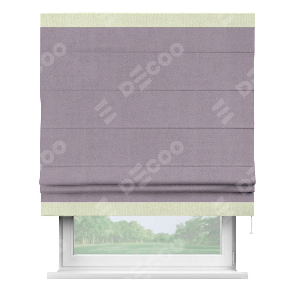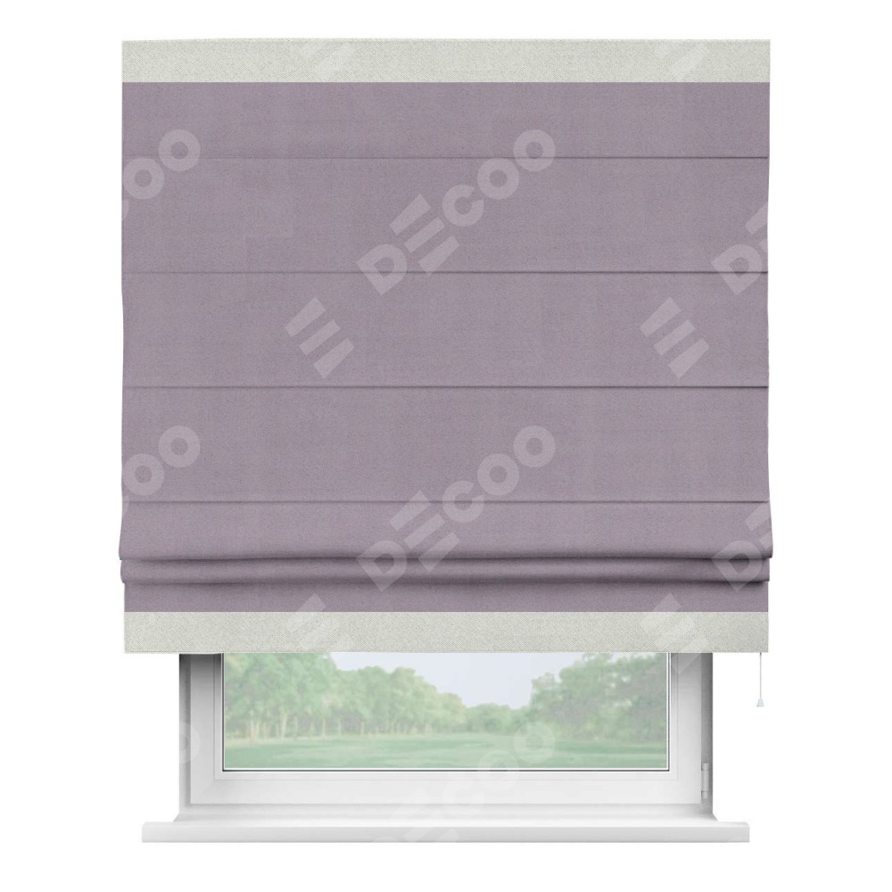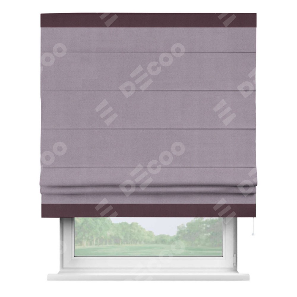 Римская штора «Кортин» для проёма, блэкаут однотонный лиловый с кантом Горизонт