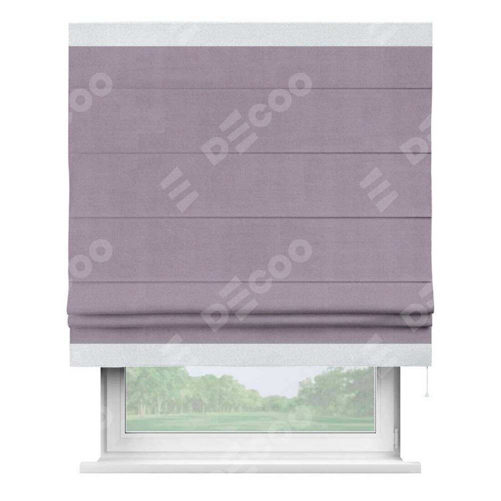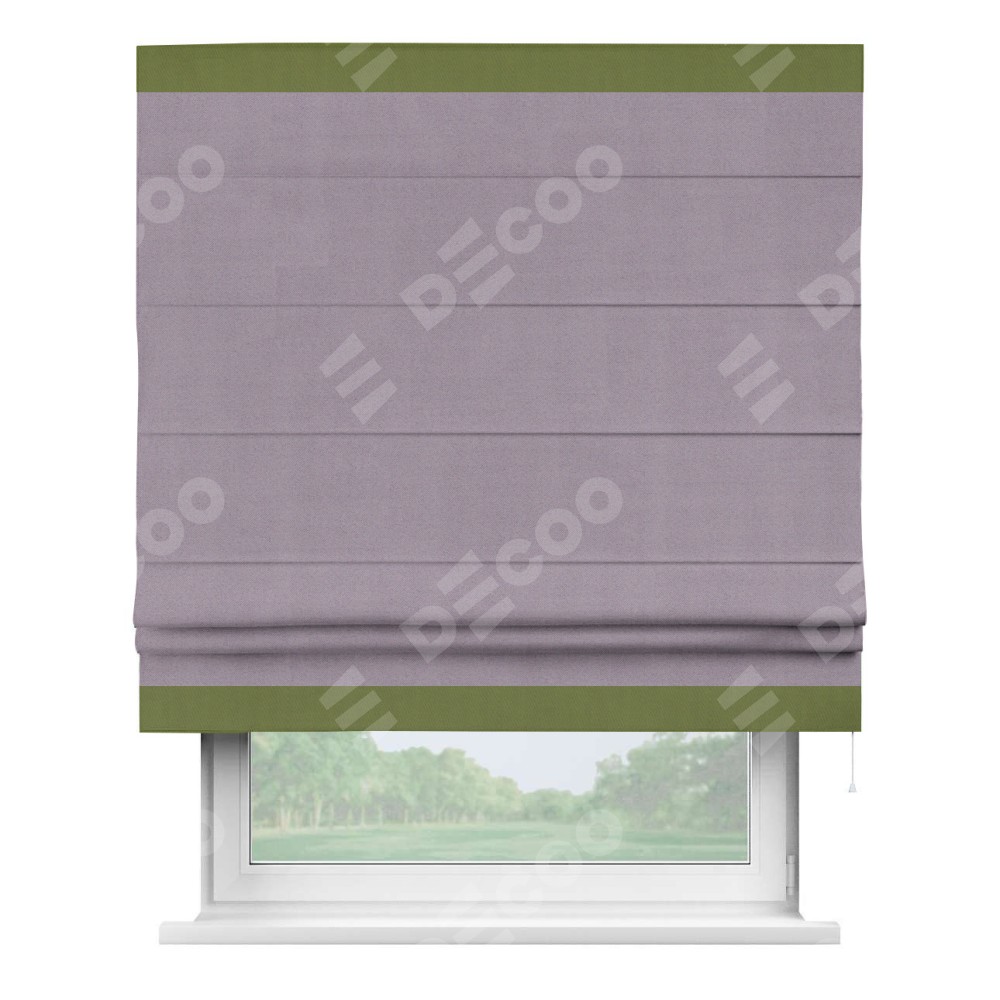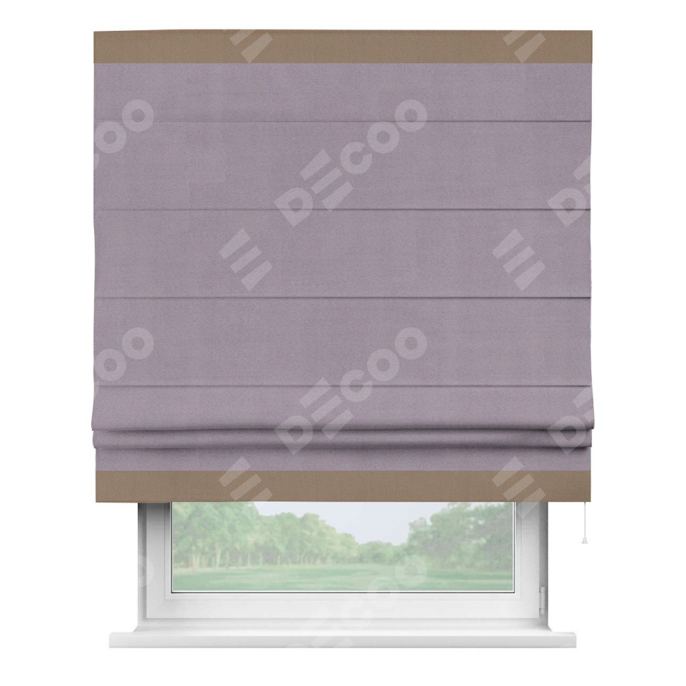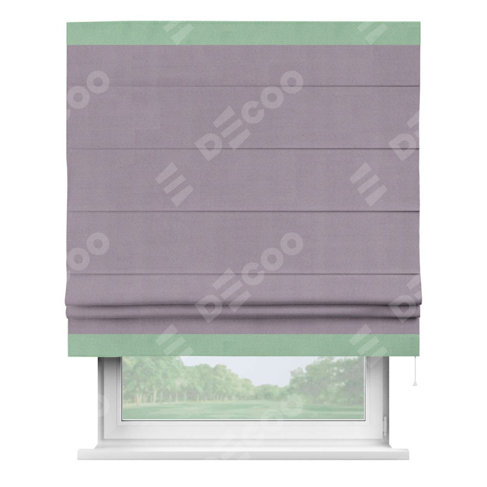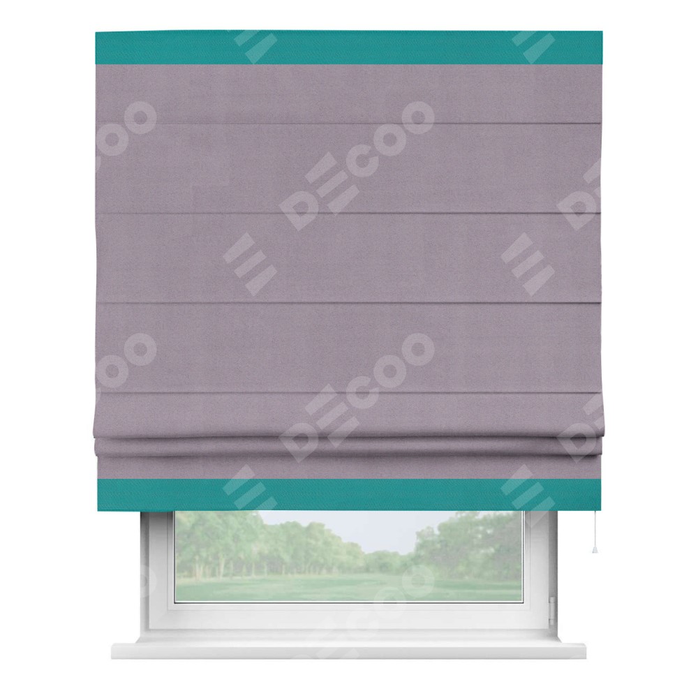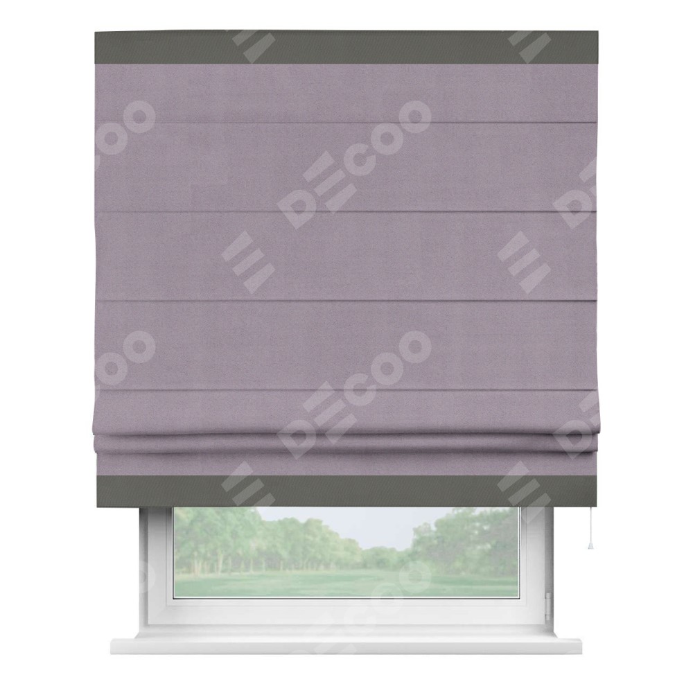Римская штора «Кортин» для проёма, блэкаут однотонный лиловый с кантом Горизонт
