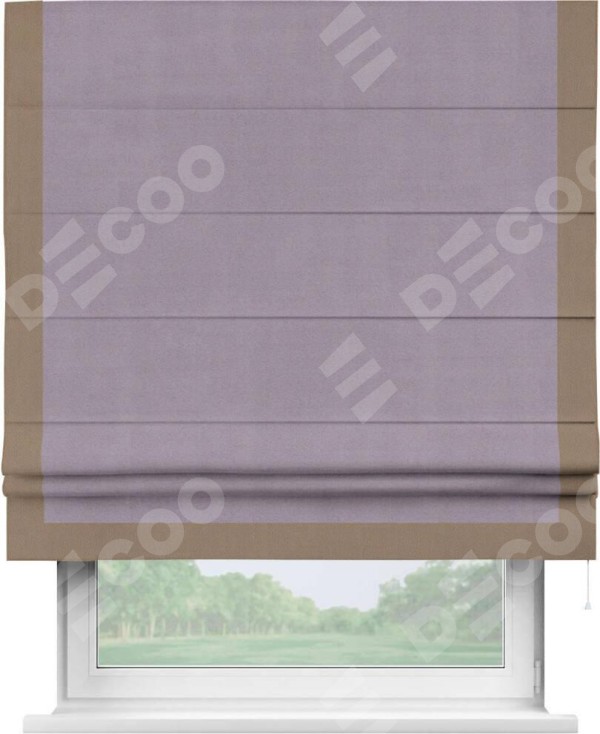Римская штора «Кортин» для проёма, блэкаут однотонный лиловый с кантом Виктория