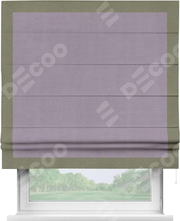 Римская штора «Кортин» для проёма, блэкаут однотонный лиловый с кантом Чесс