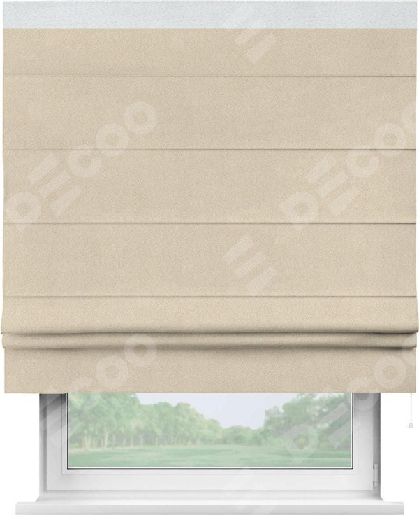 Классическая римская штора производителя «Cortin», пошита из ткани однотонный блэкаут кофейно-бежевый, артикул: 91566−1. Имеет универсальный механизм и подходит для монтажа: на потолок, на стену и в нишу.