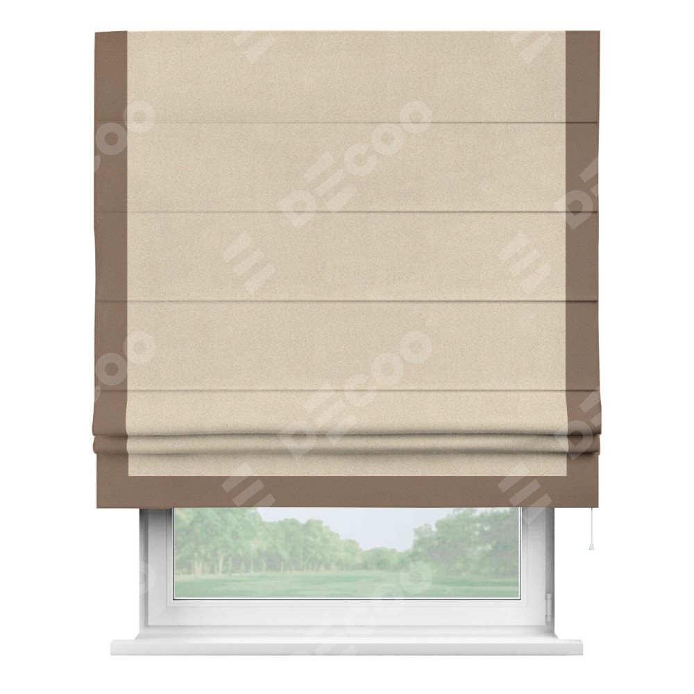 Римская штора «Cortin» для проёма, блэкаут однотонный кофейно-бежевый с кантом Виктория