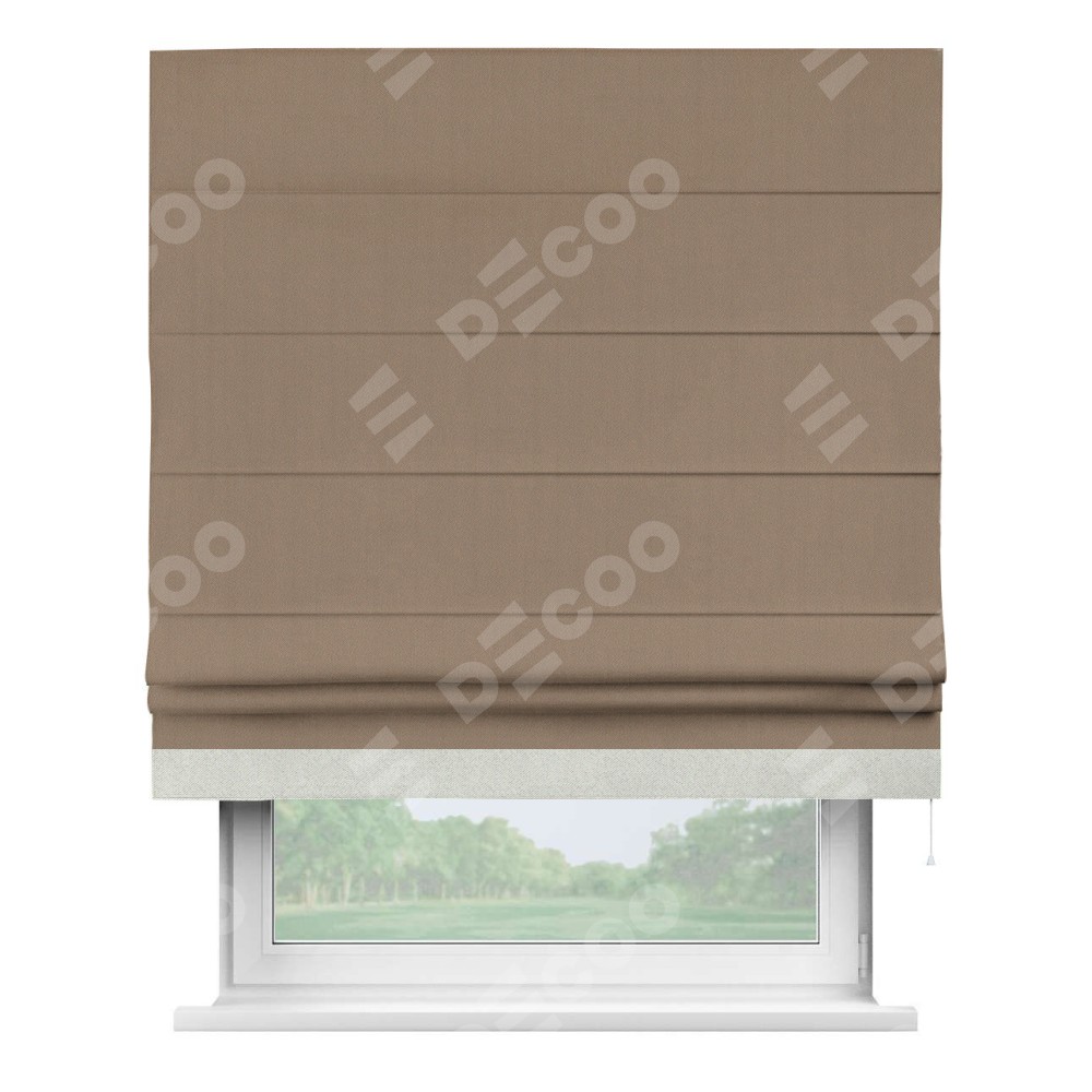 Римская штора «Cortin» для проёма, ткань блэкаут однотонный кофейно-бежевый с кантом Джестер