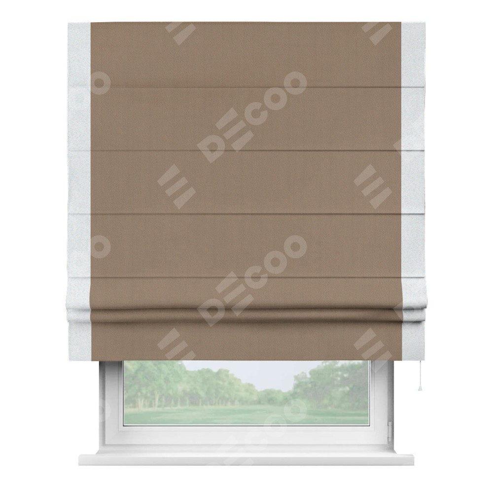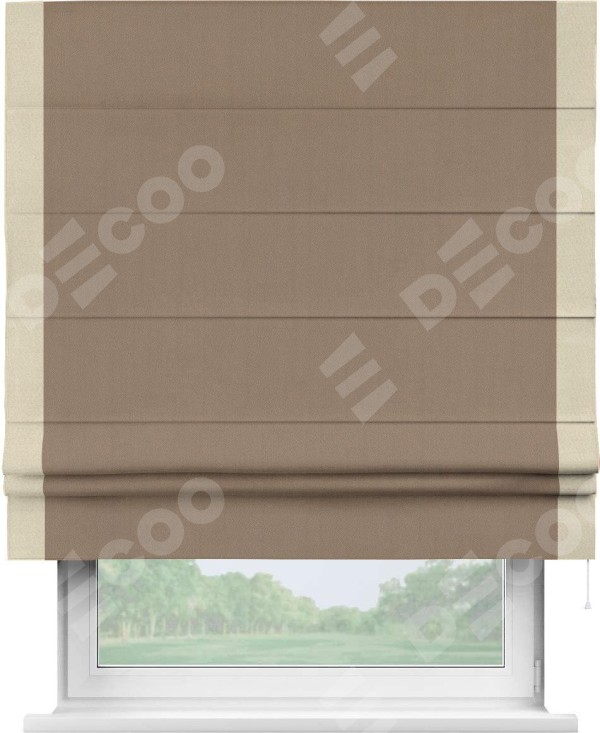 Римская штора «Cortin» для проёма, ткань блэкаут однотонный кофейно-бежевый с кантом Стрим Дуо