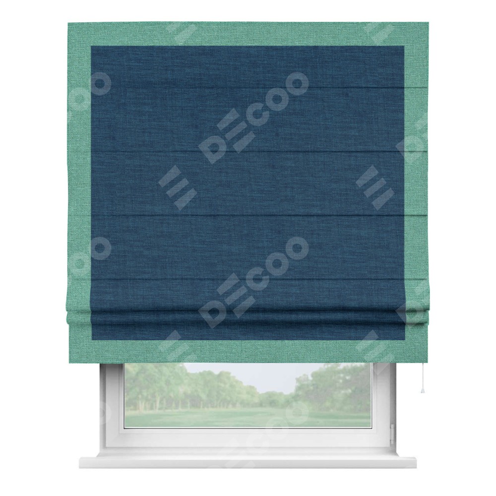 Римская штора «Кортин» для проёма, лён синий, с кантом Чесс