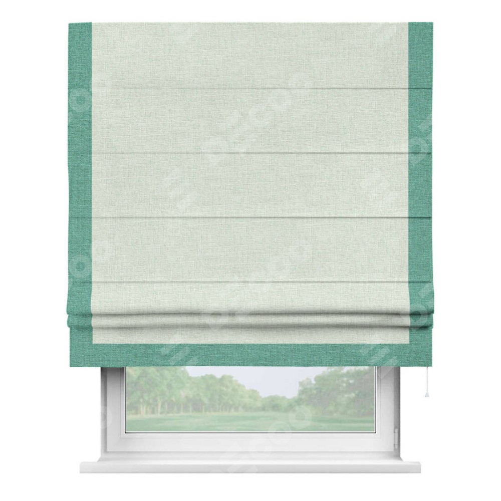 Римская штора «Кортин» для проёма, лён топлёное молоко, с кантом Виктория
