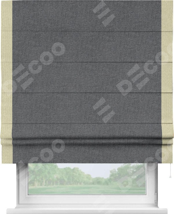 Римская штора «Кортин» для проёма, лён димаут графит с кантом Стрим Дуо