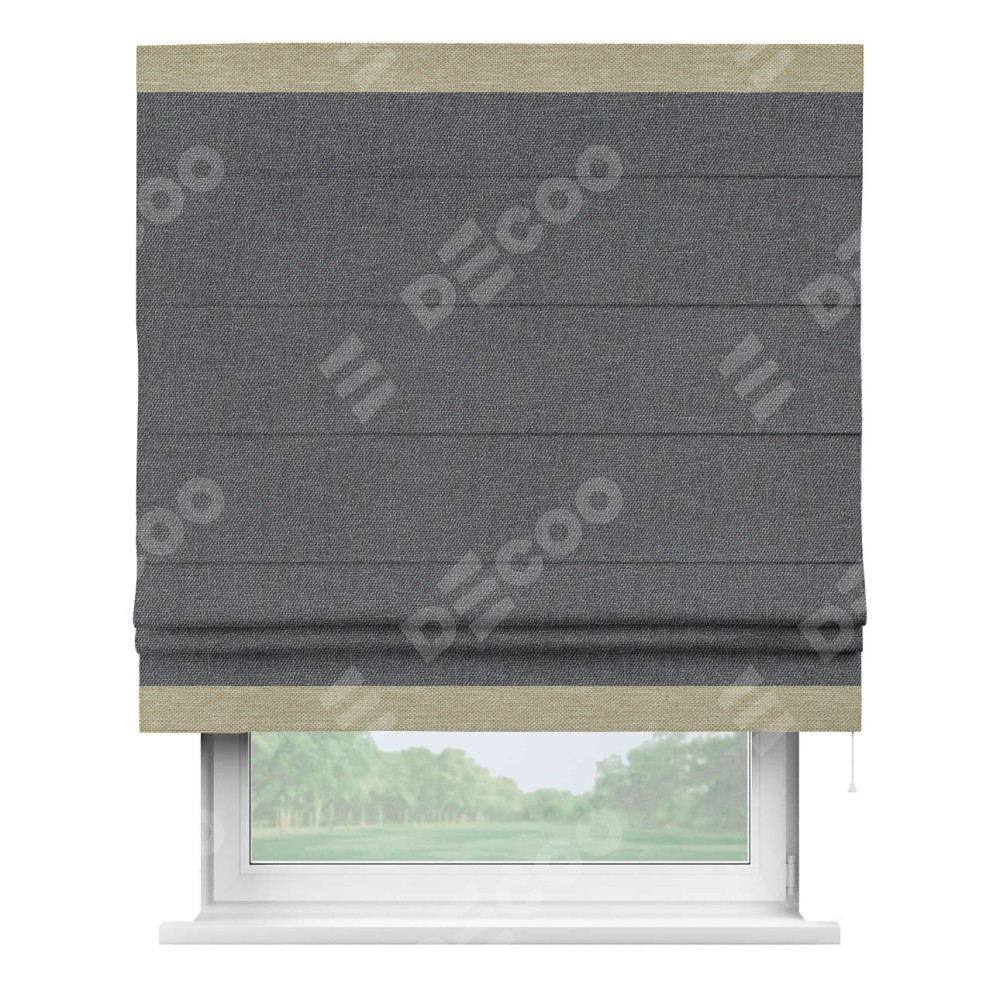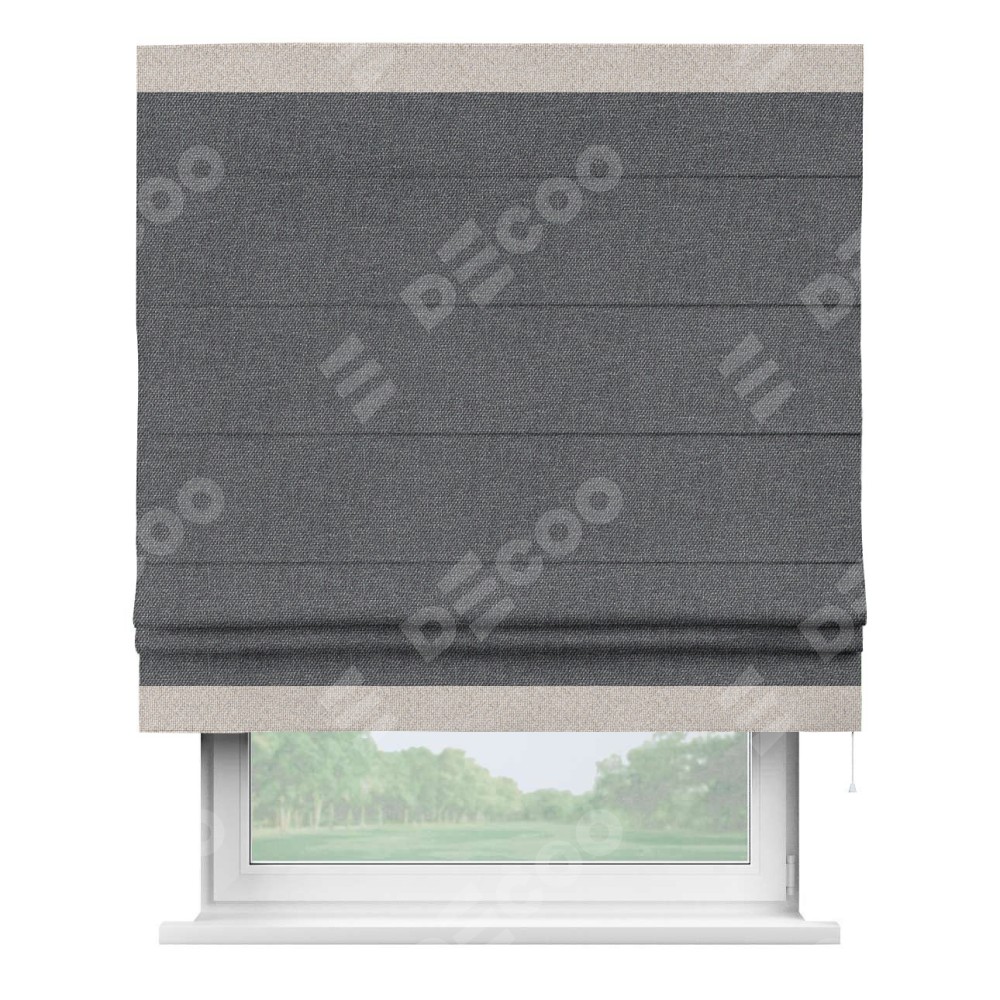 Классическая римская штора производителя «Cortin», пошита из ткани лён димаут графит, артикул: 140644. Имеет универсальный механизм и подходит для монтажа: на потолок, на стену и в нишу.