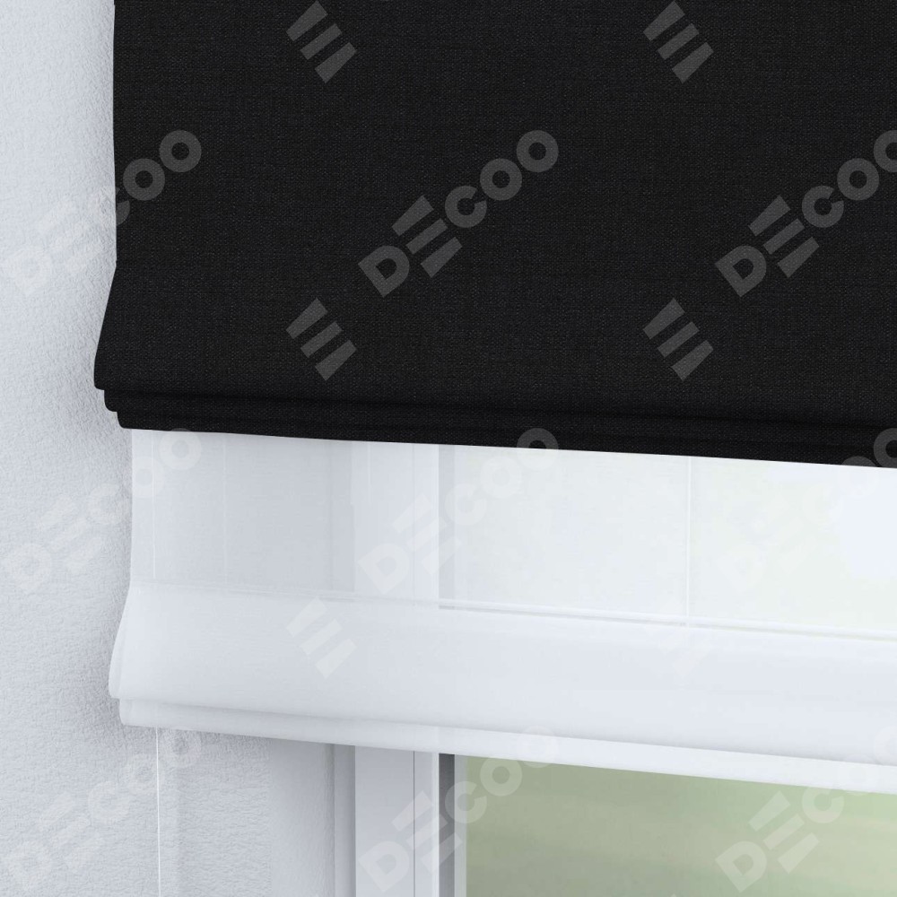 Двойная римская штора «День-ночь» от производителя Cortin предназначена для использования в проёмах. Эта штора уникальна тем, что состоит из двух полотен. На лицевой стороне находится лён черный (артикул: 140815), обеспечивающий эффективное затемнение. В комплект также входит вторая ткань — легкий белый тюль (артикул: V-01), который добавляет изящества и легкости оформлению окна. Кроме того, доступны и другие разновидности ткани тюль, выбор которых доступен по  ссылке .