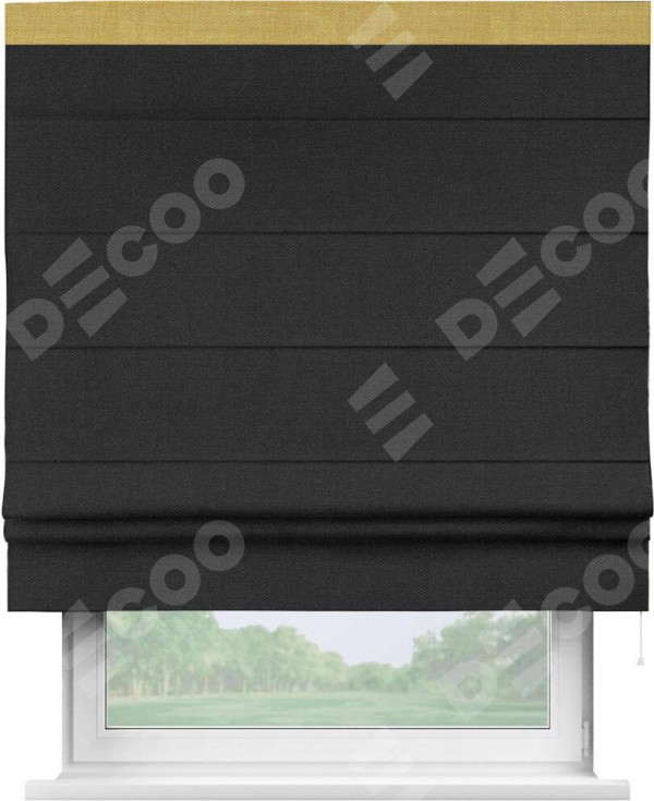Римская штора «Кортин» для проёма, лён чёрный, с кантом Кинг