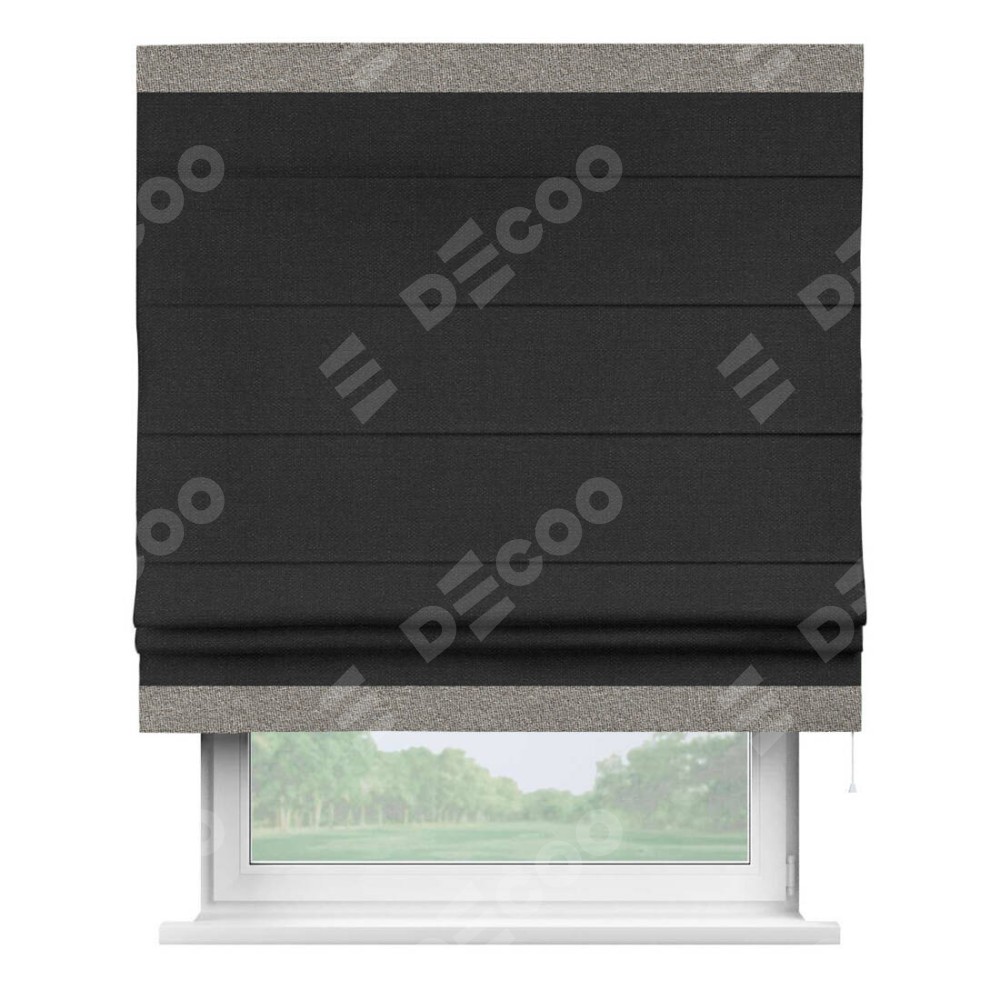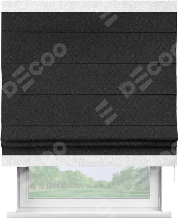 Римская штора «Кортин» для проёма, лён чёрный, с кантом Горизонт