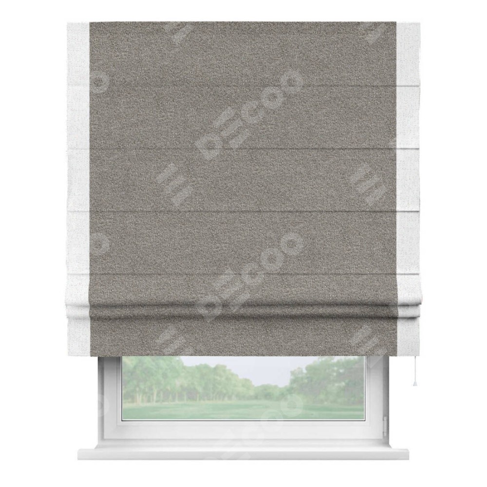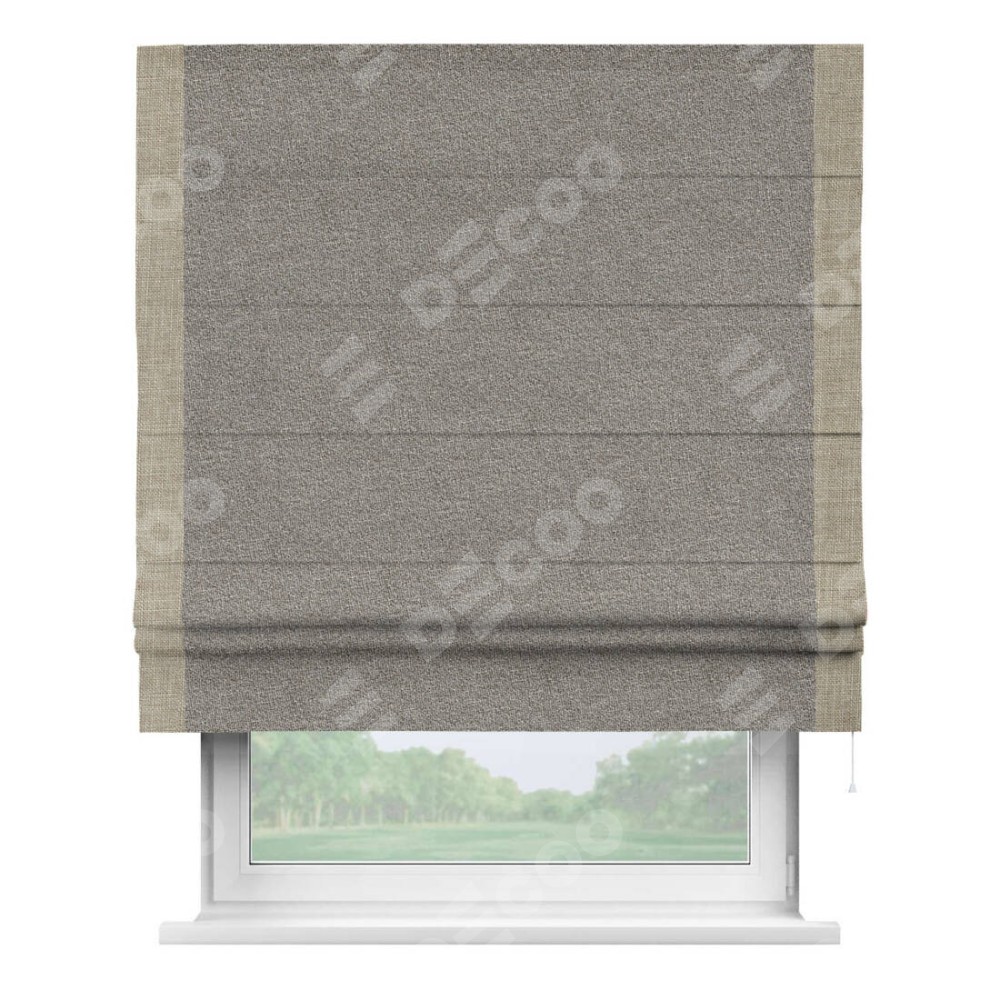 Римская штора «Кортин» для проёма, лён меланж натуральный, с кантом Стрим Дуо