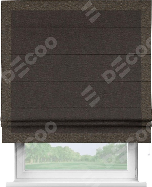 Римская штора «Кортин» для проёма, лён тёмно-коричневый, с кантом Чесс