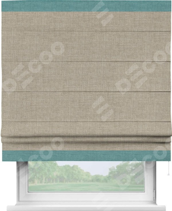 Римская штора «Кортин» для проёма, лён бежевый, с кантом Горизонт
