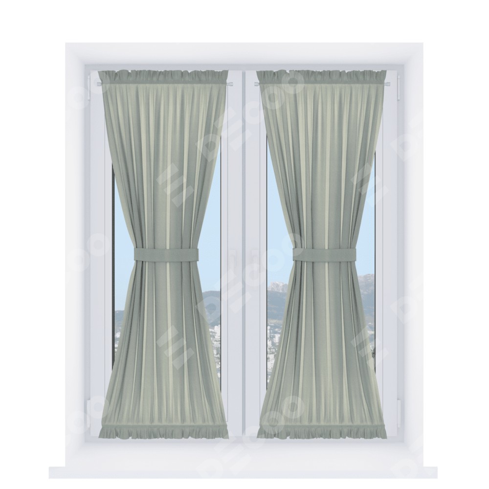 Штора «Песочные часы» производителя «Cortin», используется для створок окон и дверей, пошита из ткани лён димаут серый, артикул ткани Ф3.