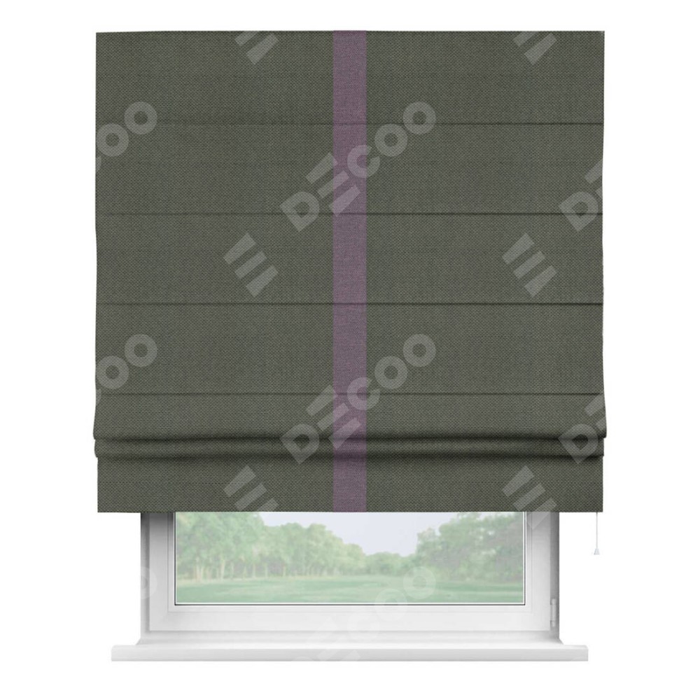 Римская штора «Кортин» с кантом Хайвэй, для проема, ткань лён димаут, графит
